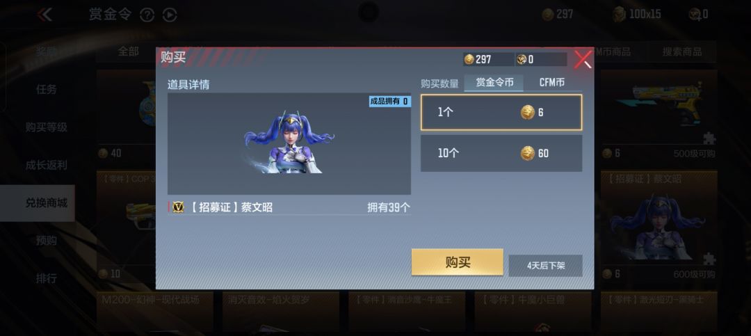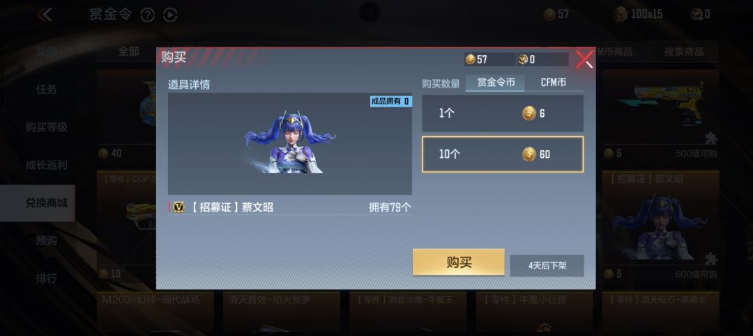肝了这么久终于600级,拿下步练师加盖的套装顺便兑换40片蔡文昭马上也可以拿下了,雷霆cop和雷霆手雷还差50多碎片才能拿下就算了而且赏金令快结束了也没动力肝了直接兑换角色得了,没什么动力玩了