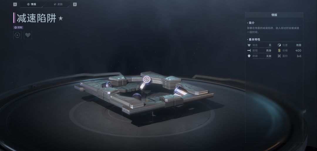 当减速陷阱部署在地面上时,能对经过它的敌人造成巨额减速,并且减速效果可持续2格,是目前版本最常用、最具性价比,减速能力最强的控制型陷阱。
