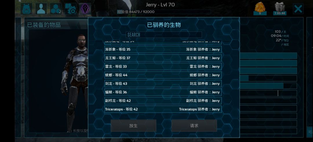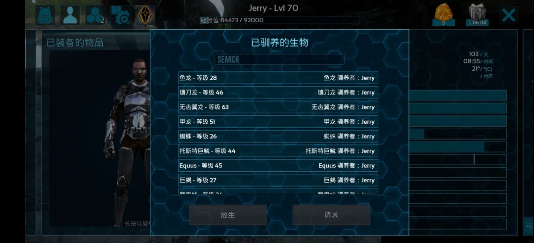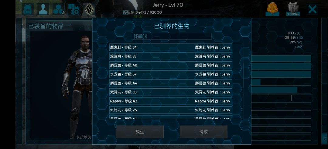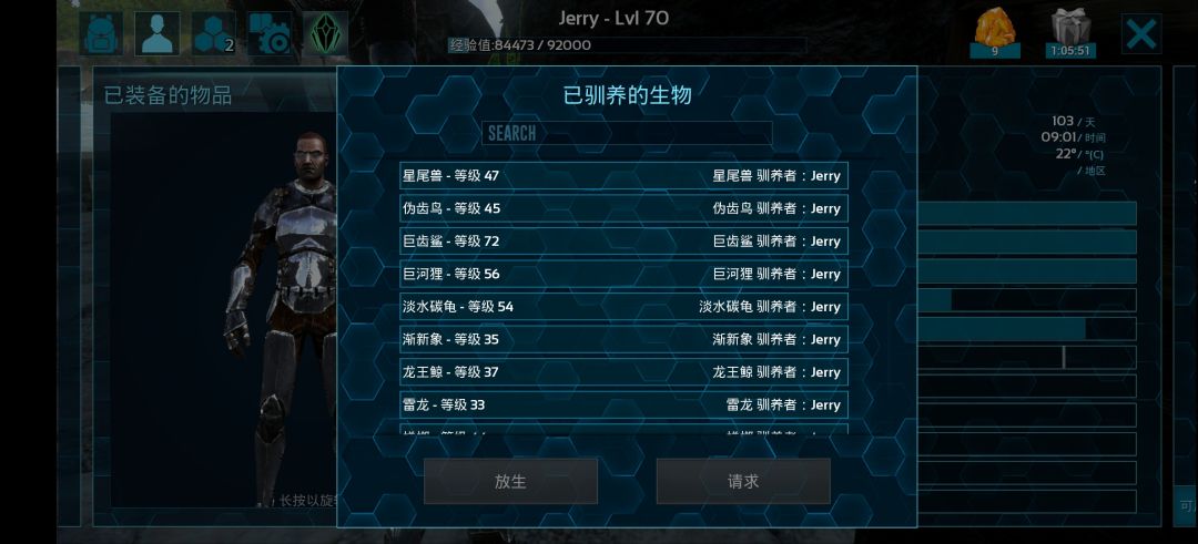 休闲简单存档标准中期,养老存档,已经在悟饭游戏厅软件发布存档,人物等级70级,工具龙挺齐全的,目前还差南巨和泰坦,资源比较多,挑了几只等级在休闲简单模式够用的龙,素食岛海域用巨兽门全封闭,万血托斯特可骑乘(鞍是制革厂卡的),半毕业,本人不是很肝,大家看看就行😜,希望方舟越来越好