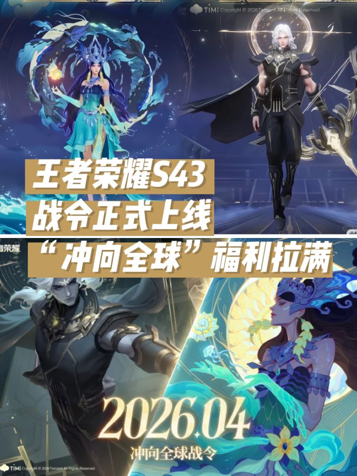 4月10日王者荣耀S43赛季战令已同步赛季开启,本次战令以“冲向全球”为主题,采用宇宙星空风格,分为免费精英版与进阶版,福利覆盖零氪与微氪玩家,性价比突出。#今天游戏圈发生了啥 #王者荣耀