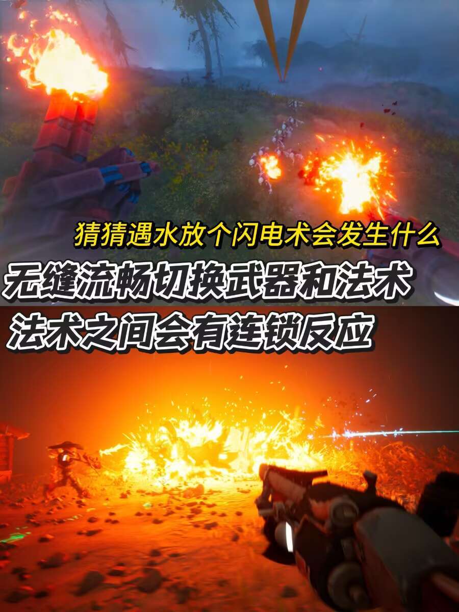💨而法术之间是有连锁反应的,遇到潮湿地区放一个闪电术,直接大范围传导闪电!