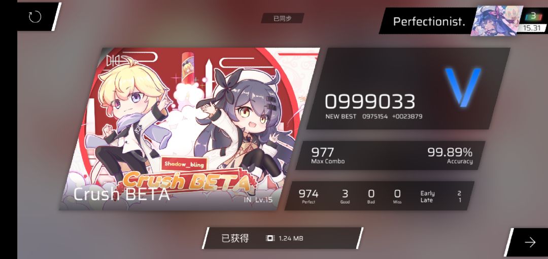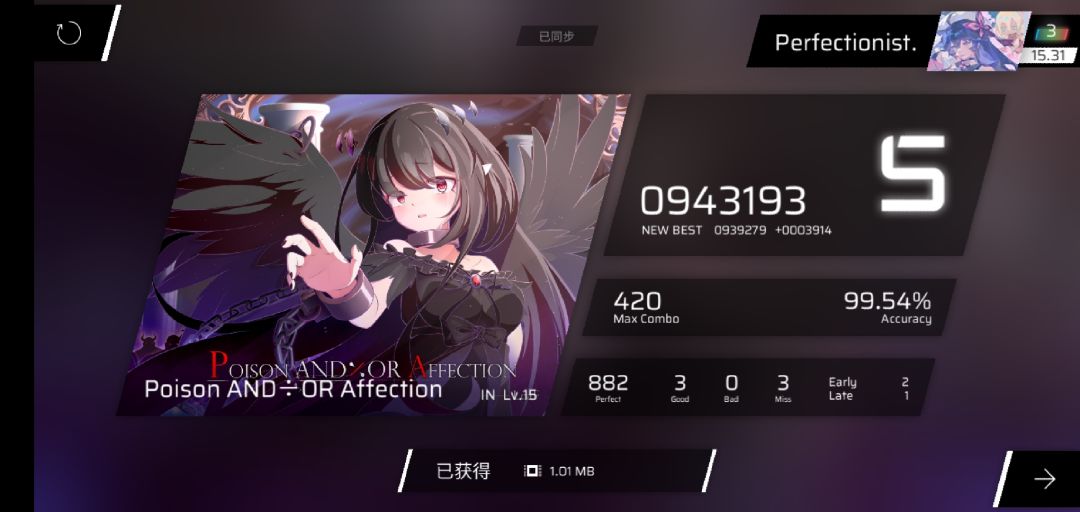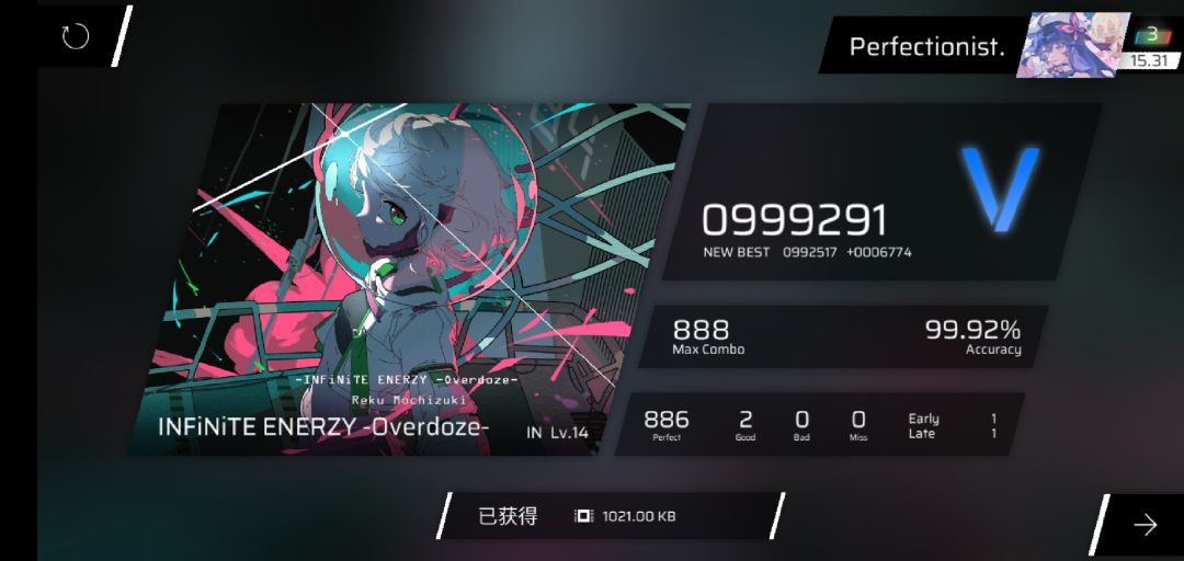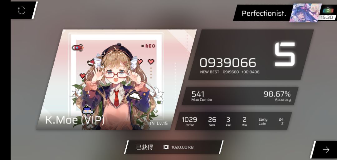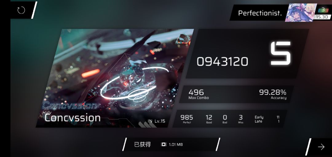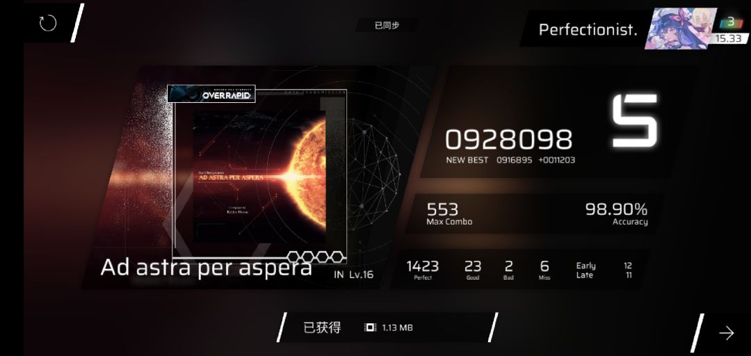 rks15.30→15.33,321凭借新的acc将良怒赶下b1并且达成单曲rks15.8成就