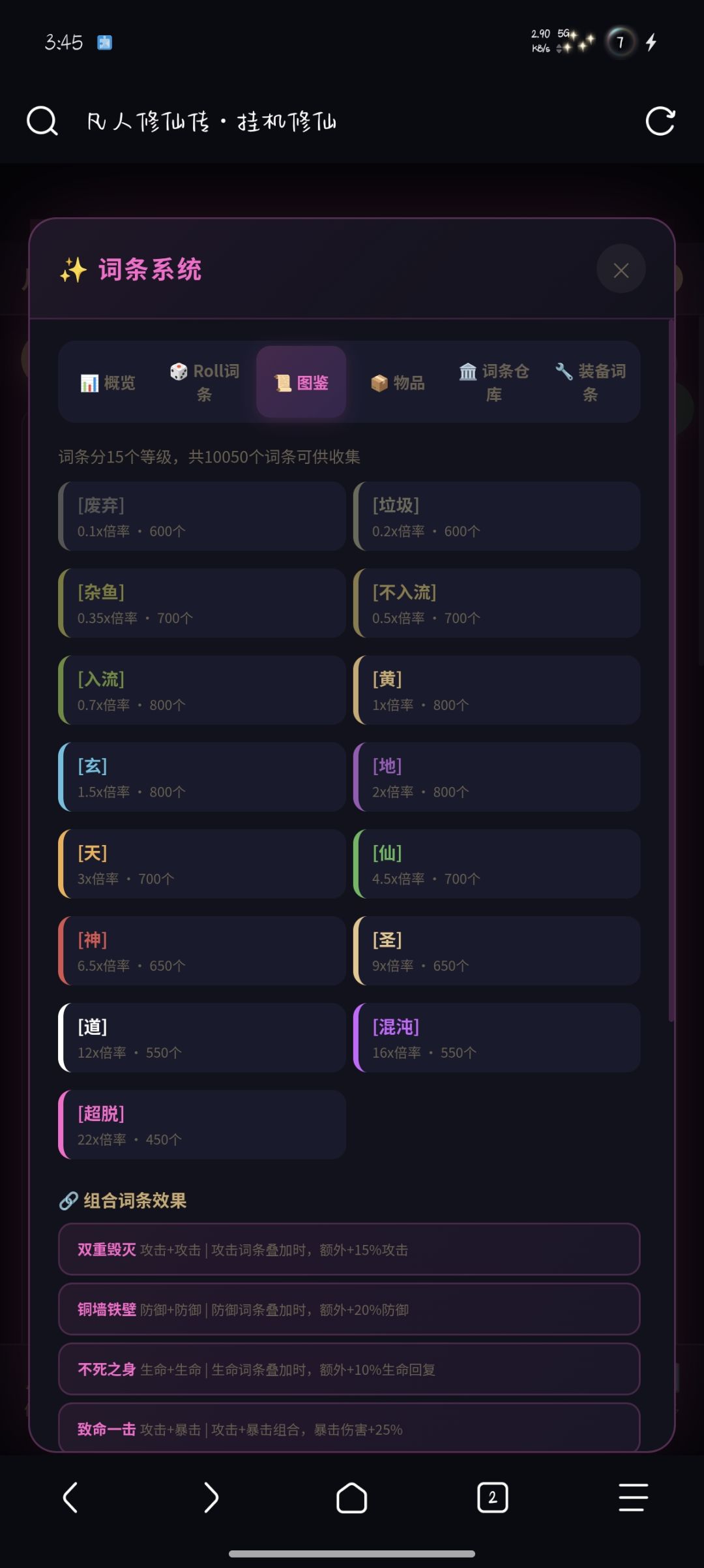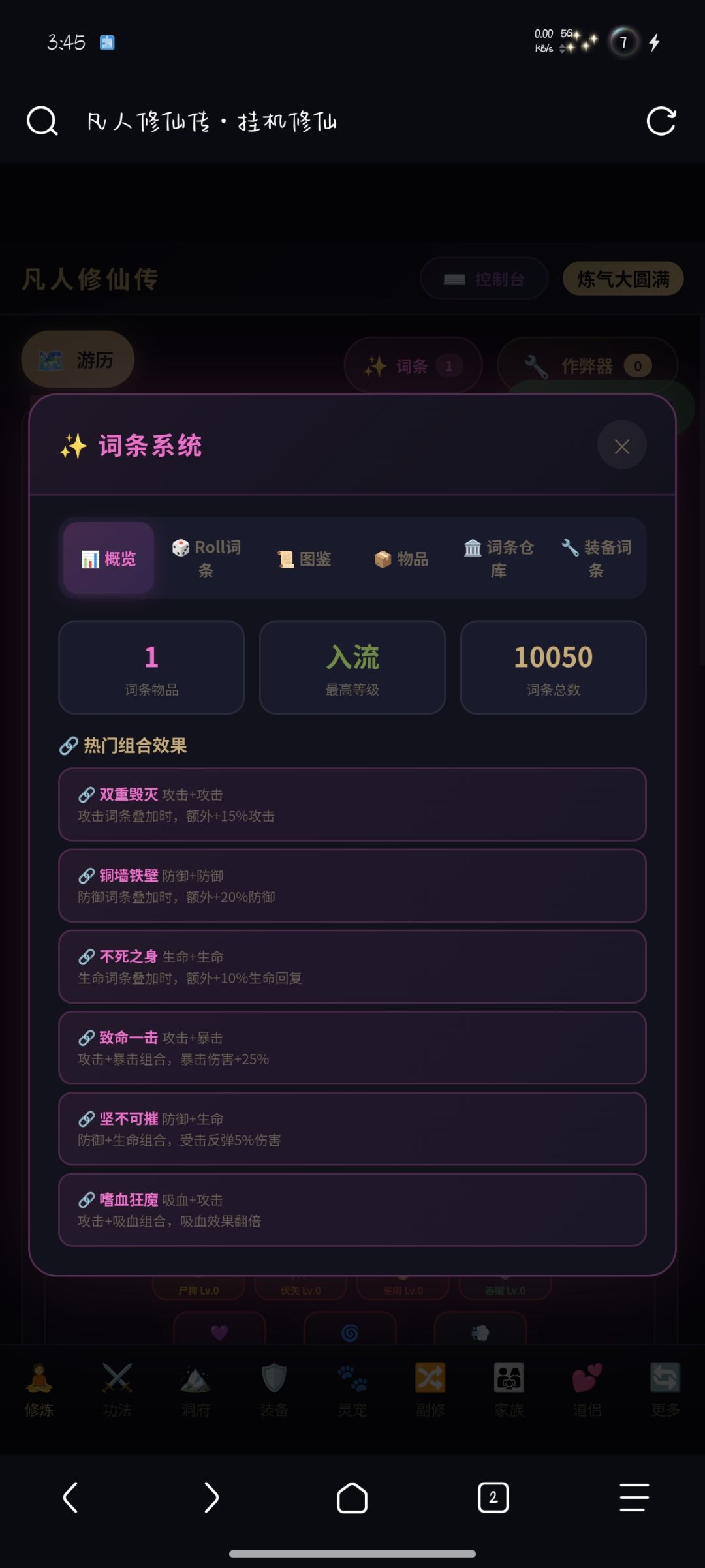 词条系统 — 类Roguelike词条洗练、图鉴收集、仓库管理、装备词条