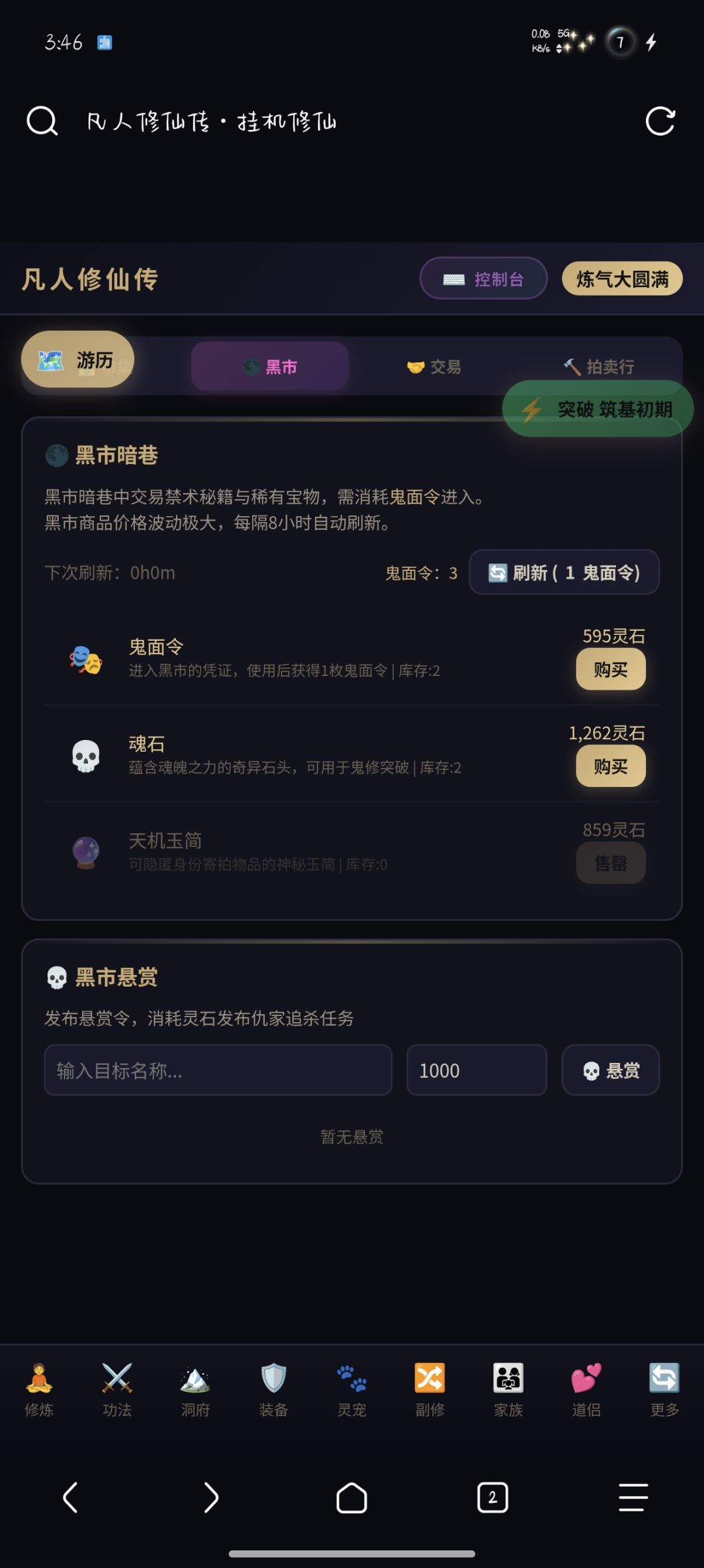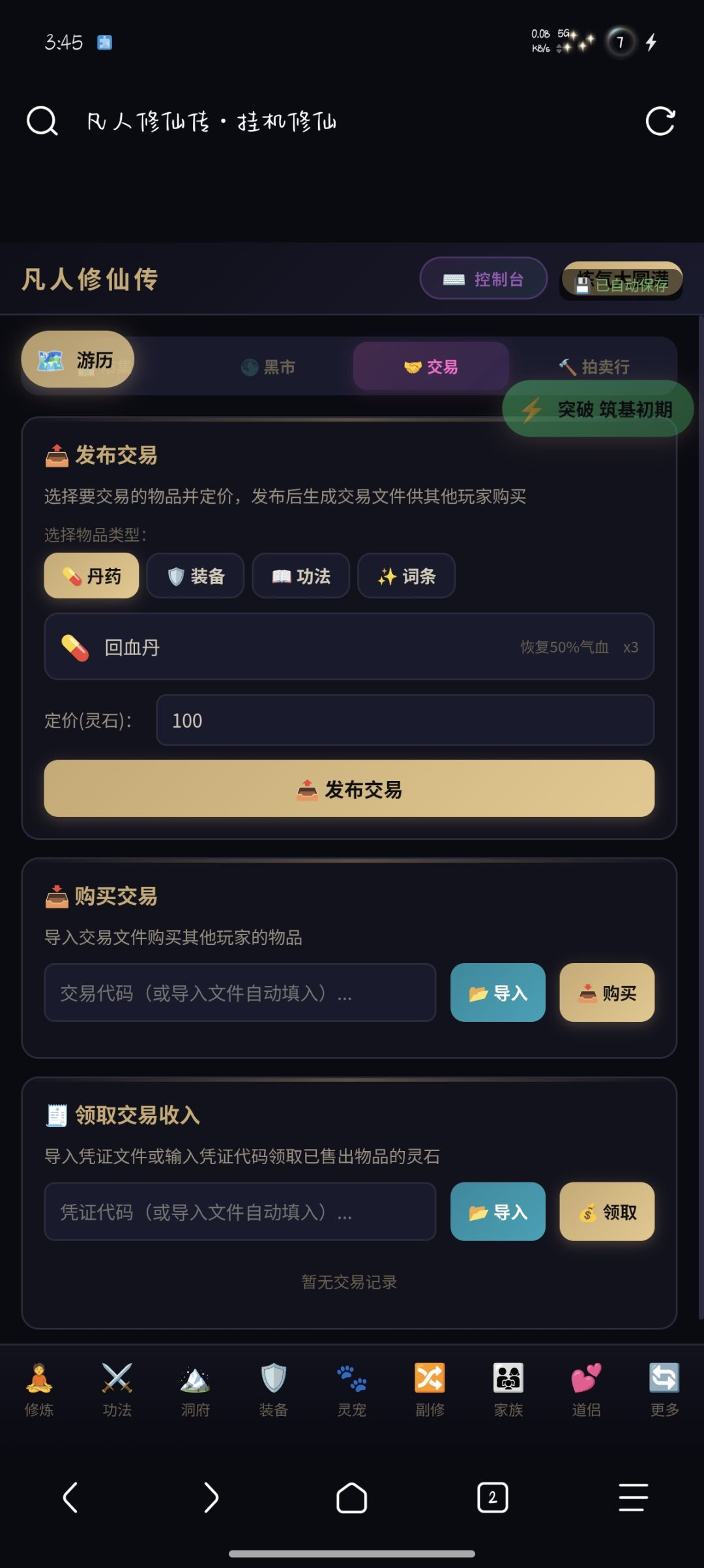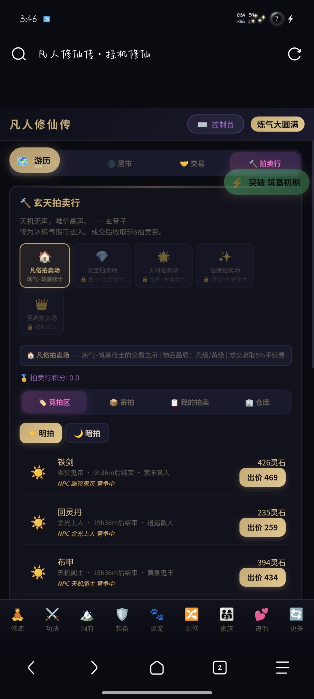 10.拍卖场 — 五大拍卖场交易丹药、装备、功法