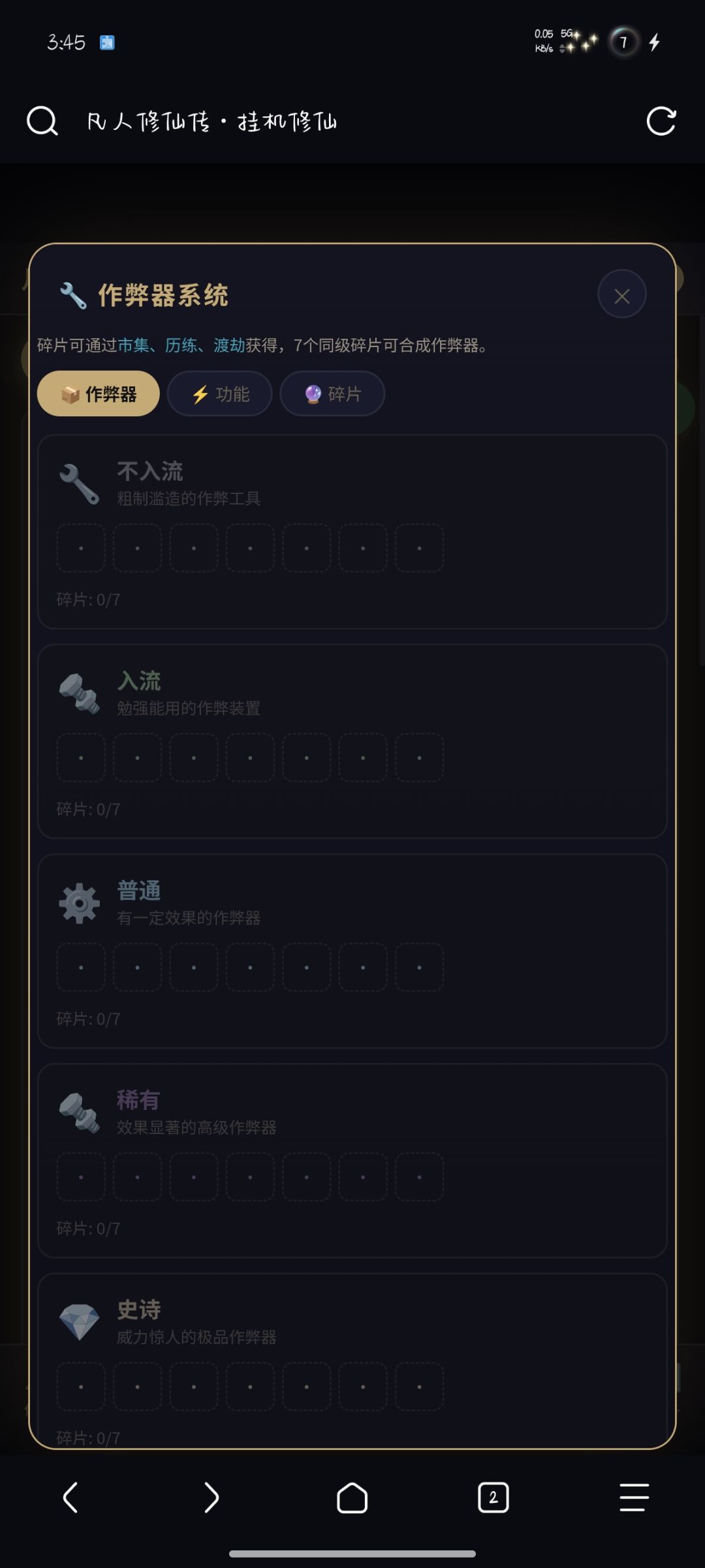 12.作弊器系统 — 收集碎片合成作弊器,但使用有风险(可能身死道消跌落境界)
