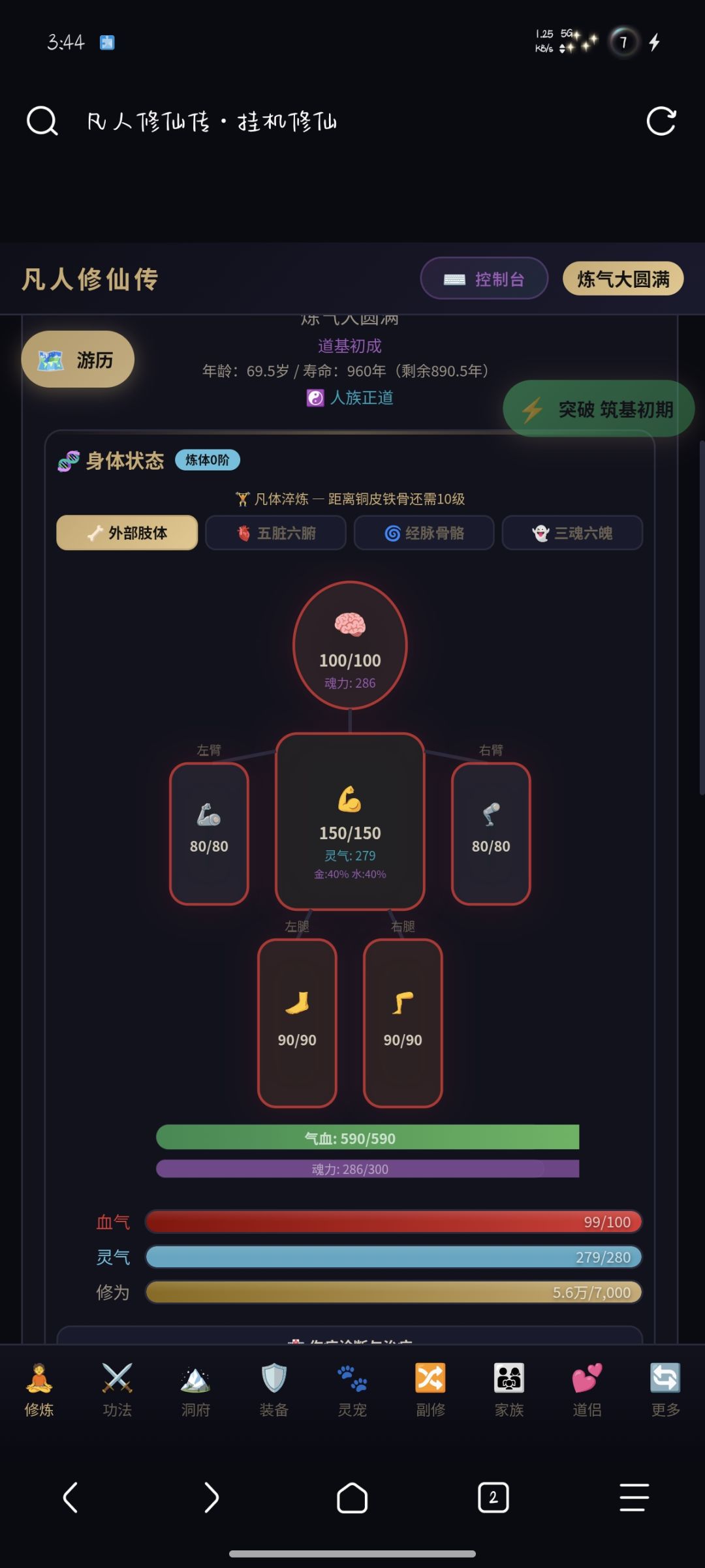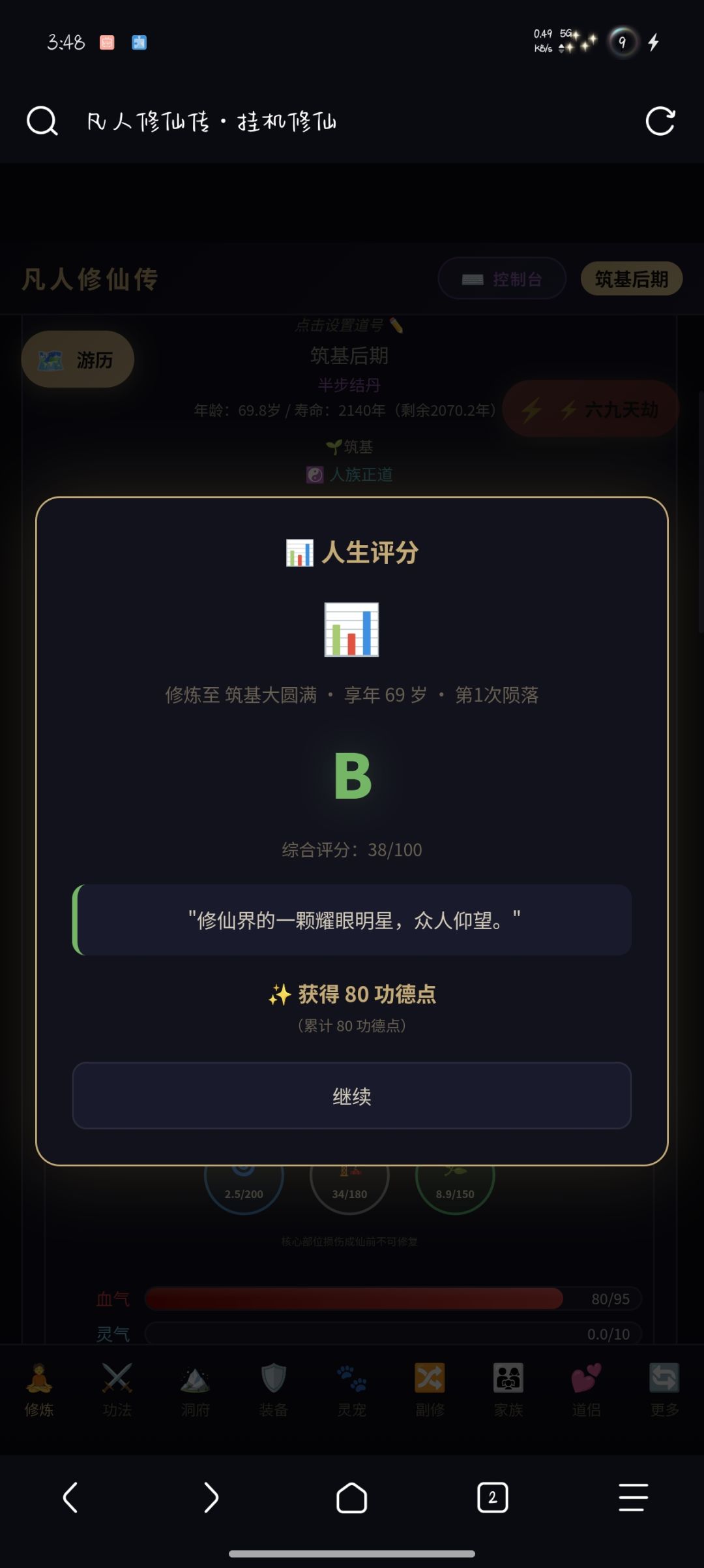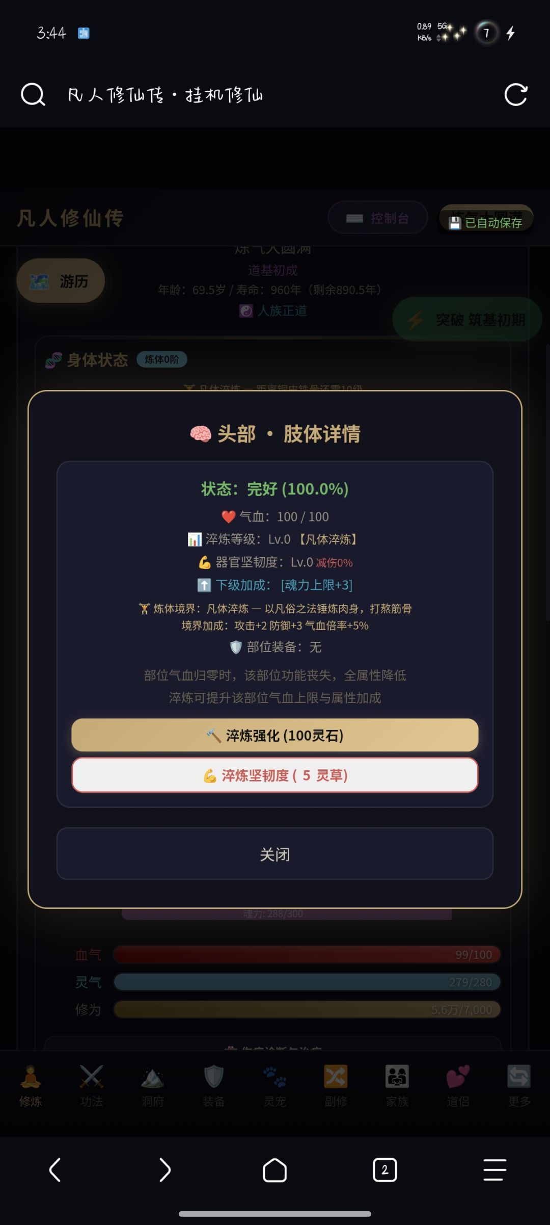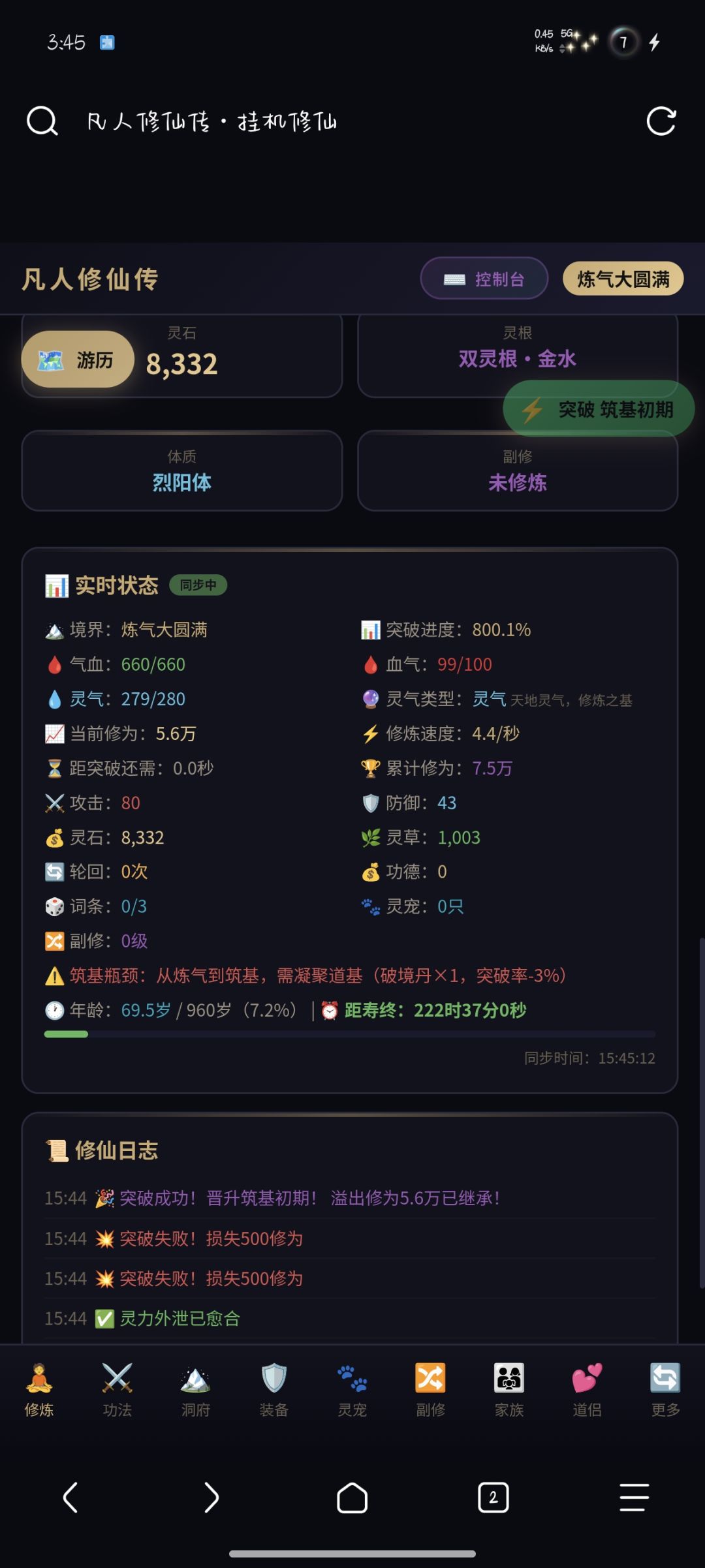 1.修炼系统 — 自动积累修为,突破境界。从练气期到散仙、真仙、金仙,42+个境界层级,渡劫失败可能身死道消