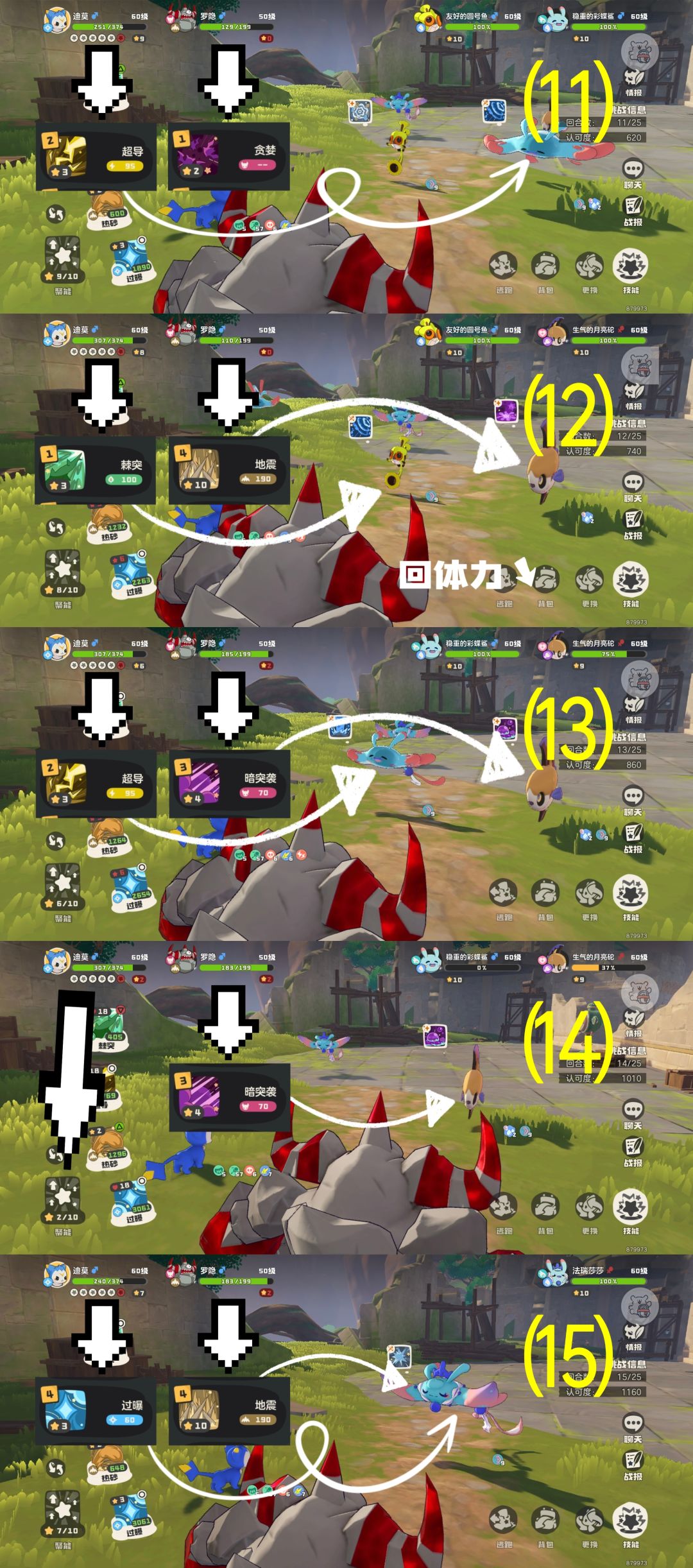 ⑫ 迪莫(棘突)→圆号鱼,罗隐在背包里回一个体力瓶(地震)→月亮砣