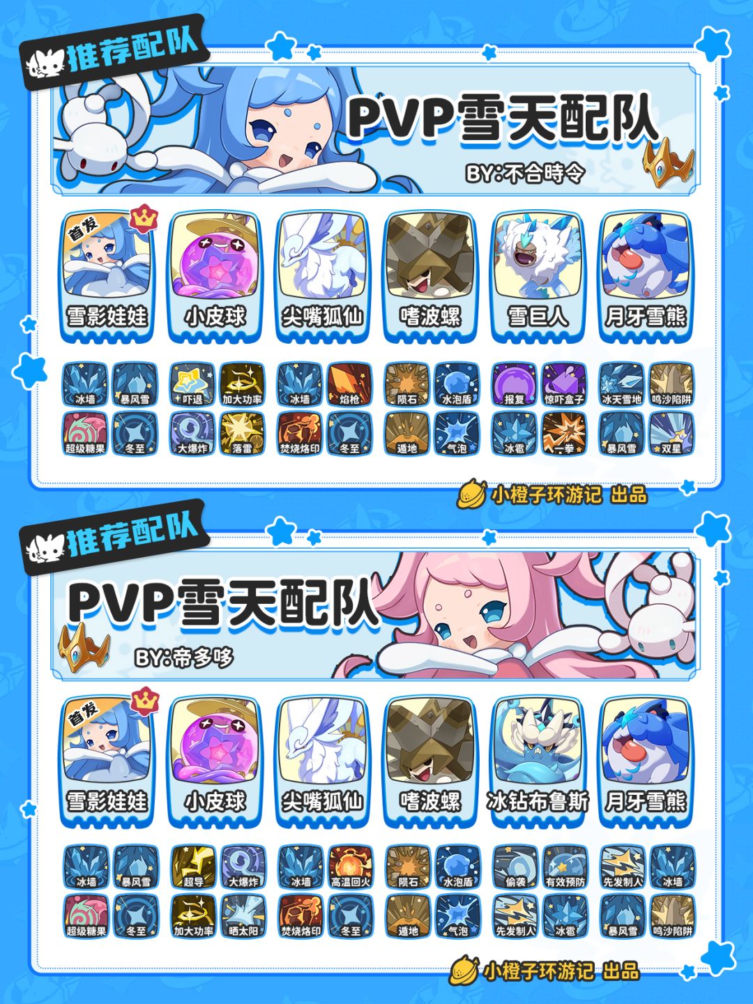 ①雪影娃娃的PVP的阵容就是雪天队,阵容大同小异,基本上固定为雪影+小皮球+狐仙+嗜波螺+月牙雪熊,剩下一个位置可进行其他精灵替换调整。
