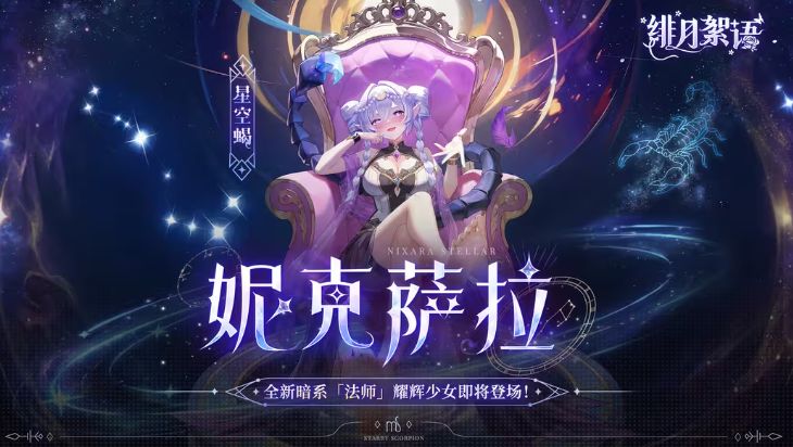 《绯月絮语》今日正式官宣全新暗系法师耀辉少女 ——「星空蝎・妮克萨拉」,技能机制集剧毒、真实伤害、变身形态于一体,强度炸裂,瞬间成为玩家热议焦点。