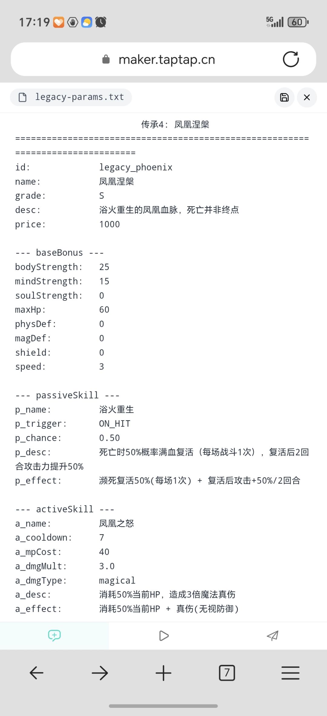 半成品游戏也有好多玩家在玩了,开发一下传承和功法功能,名字是我取的,内容是ai生成的,但是明显能看到部分技能在主神空间里有些逆天,所以大伙让ai自动生成内容后,最好还是自己测测自己玩一下。毕竟我已经被塔啦啦所谓的平衡给坑过一次了