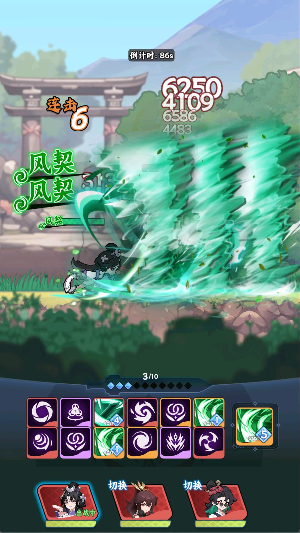 不管是使用风暴旋+风牙连刺或者是使用升龙斩+破风连斩为主力输出,根本上都是达成无限控制进行输出,核心是刻印回天(攻击浮空敌人回剑气),达成无限剑气无限技能循环,不需要普攻,见图三图四,可以参考组合;
