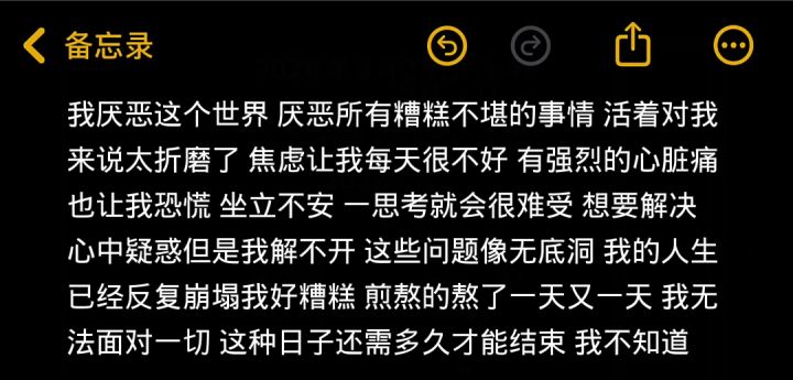 我本就是很糟糕的人 我敏感多疑爱胡思乱想缺乏安全感 情绪不稳定 讨好型人格 容易患得患失容易被别人的话影响 我嘴硬生气的时候爱说反话我每天想的很多 甚至有些时候因为自己的样貌会感觉到自卑 因为我总觉得自己不如别人 会崩溃会莫名其妙的烦躁 我感到焦虑 失眠 无力感 感觉不到开心 我一直觉得心里空空的 更多的时候会感到有落差 陷入难过的死循环 我总在意一些小事 我会控制不住胡思乱想 我感受不到被爱就会全身而退 所有人都觉得我是个乐观开朗的人 每天都在笑 因为我不想影响别人 一有人问我怎么的那—刻 真的想哭