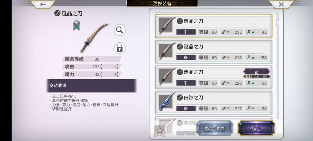 看攻略大佬的狼姐伤害都爆表,我打隐王总是感觉差点伤害,这出装还能不能优化,武器是希望武好还是这个谜晶刀更适配呢?