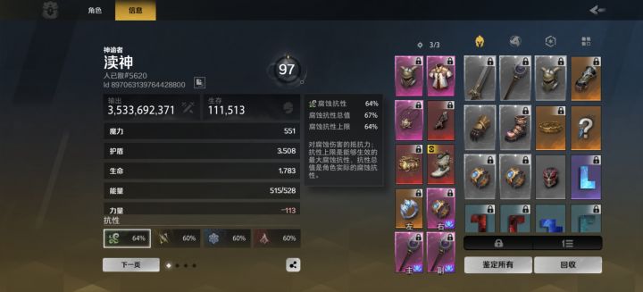 这是我加了一个小型宿命以后,我自己看腐蚀抗性是67别人看我就是57为什么呀