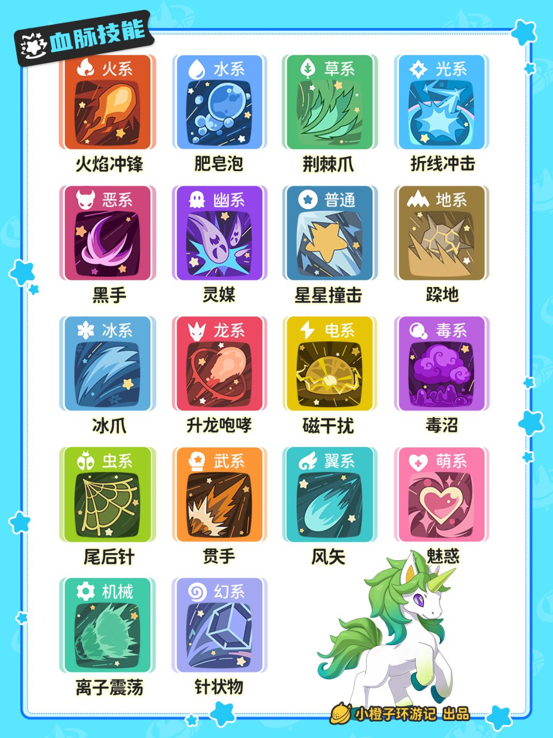 橙子赶出了小独角兽的详细攻略,一共6页,包括性格个体值养成、进化方式、技能搭配、配队选择、以及血脉技能。 小洛克可舒心查看哦~