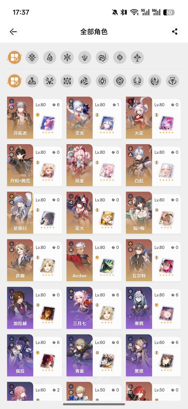 去年9月份入坑,没生存补了个风堇,清小怪补了个白厄,因为白厄没队友又补了周日