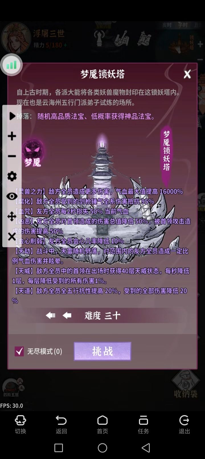 18天,百万血会心流火剑,13灵窍,稳定挂机梦27,梦30暴力拼伤害已过。主线全通,龙三已过,幽冥50分多打几次能拿。