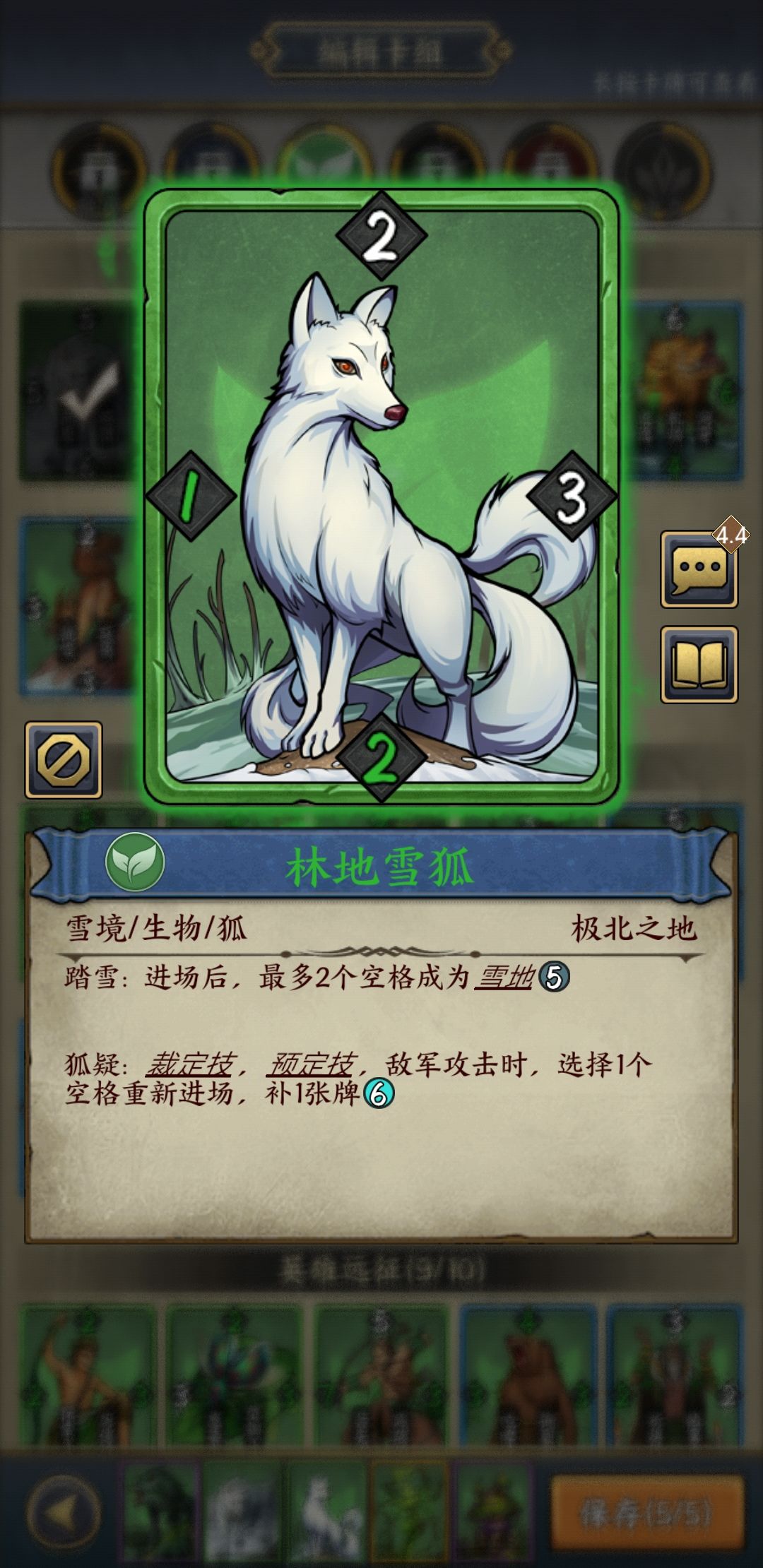在繁殖流卡组中狐狸的游戏级不是那么的高,但作用也不容小觑(配合繁殖大师和冰原狼)。它作为狂野中少有的几张有快速补卡能力的牌,配合什么卡组都很好用,本身质量还是很高的。(但多半对面一看到就会直接吞掉或者撕裂潜袭翻掉www)但由于是绿卡,补不到太好的牌,很难翻盘。