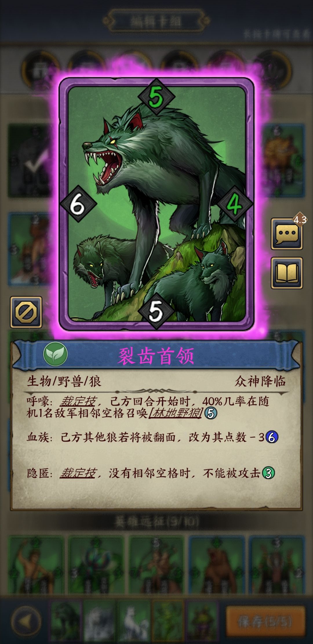 这张牌应该不用我多说了吧,无论是血族流还是繁殖流,裂齿首领都是绝对的核心,毕竟技能过于变态。不过血族不是裁定技,所以这张牌如果被翻面还是可以再翻回来的。但是毕竟少了一个呼嚎的技能,还是亏了。总之要放在脚钉或者地形边上,保护就完了!