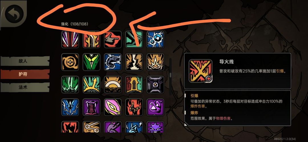 2.通用强化符文(如图5),有个特点,就是不会刷出你触发不了的护符(指人物普攻,破攻,开局法术,有标签的护符力量护符那些,都触发不了),就不会刷出来,只有有标签的护符,才会出所有流派(飞羽,毒,爆炸,火,电等),因此流派选择尽量单一,比较好刷出成套强化护符。