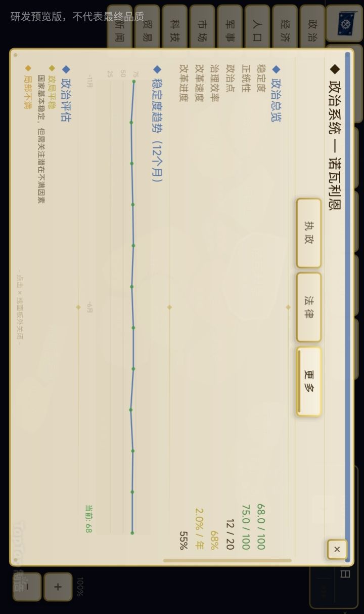 游戏目前已经完成了地图制作与基础框架,并完善了政治系统。