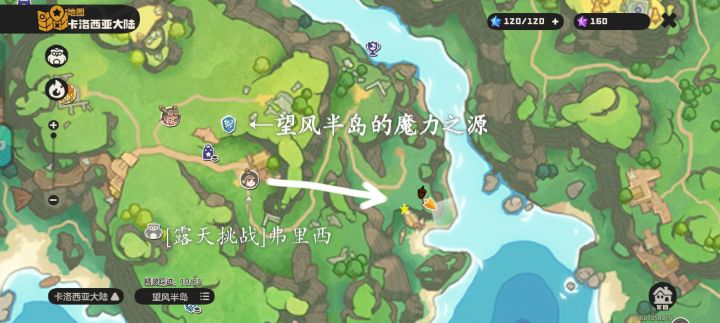 1地图位置 2是背对着[露天挑战]弗里西 3条件 4右边有一个黄色眠枭之星