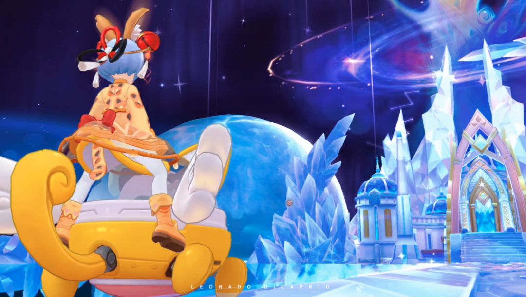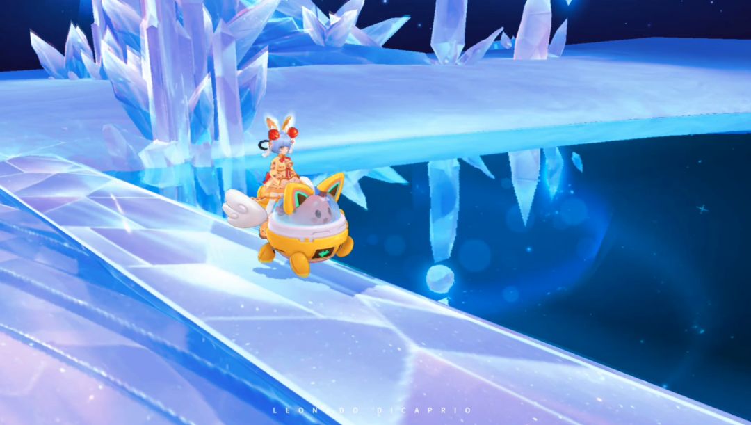 坐骑的机械足踏在晶蓝的湖面上,划出一道道细碎又灵动的光痕,白色的羽翼轻轻扇动,带起轻柔的风,拂动着月夜猫的发丝与裙摆。四周矗立着冰蓝色的晶柱,在月色与星光的折射下熠熠生辉,像是守护着这片秘境的天然屏障,而奔跑的身影穿梭其间,满是无拘无束的欢喜。月夜猫的猫耳随着奔跑的节奏轻轻晃动,满心都是自在与畅快,她不必理会世间的繁杂纷扰,只沉浸在这片独属于自己的天地里,任由耄耋坐骑带着她向前飞驰。