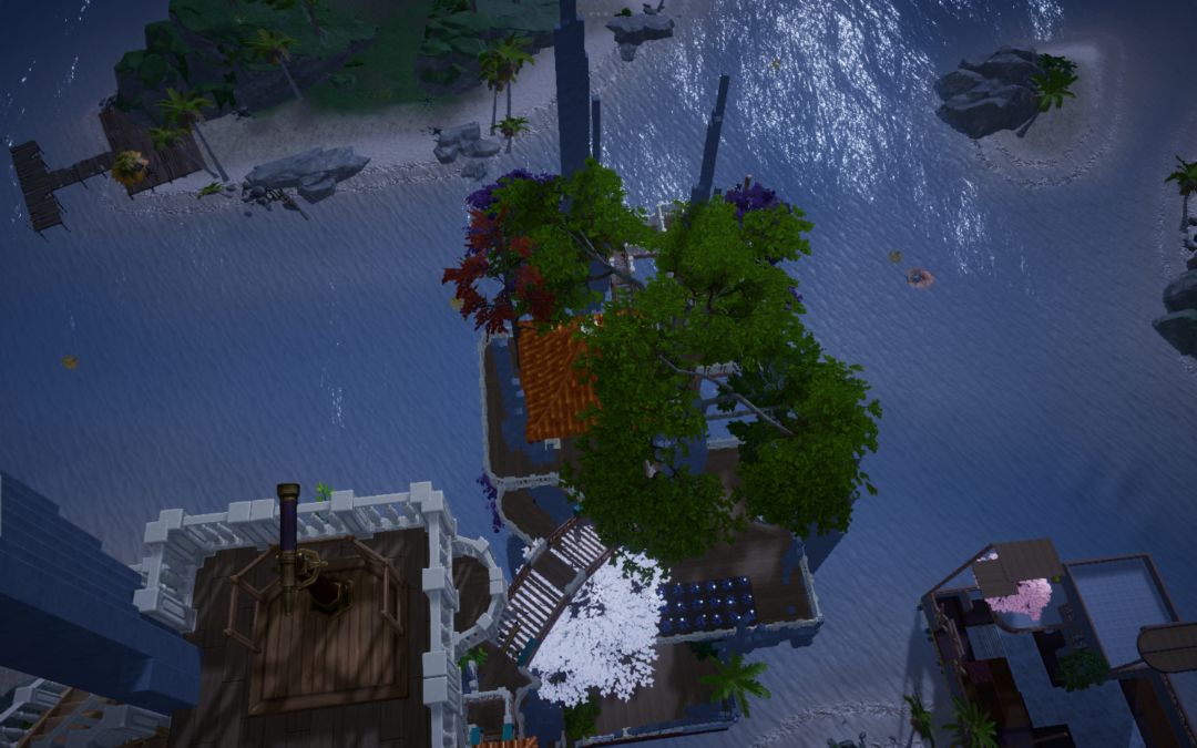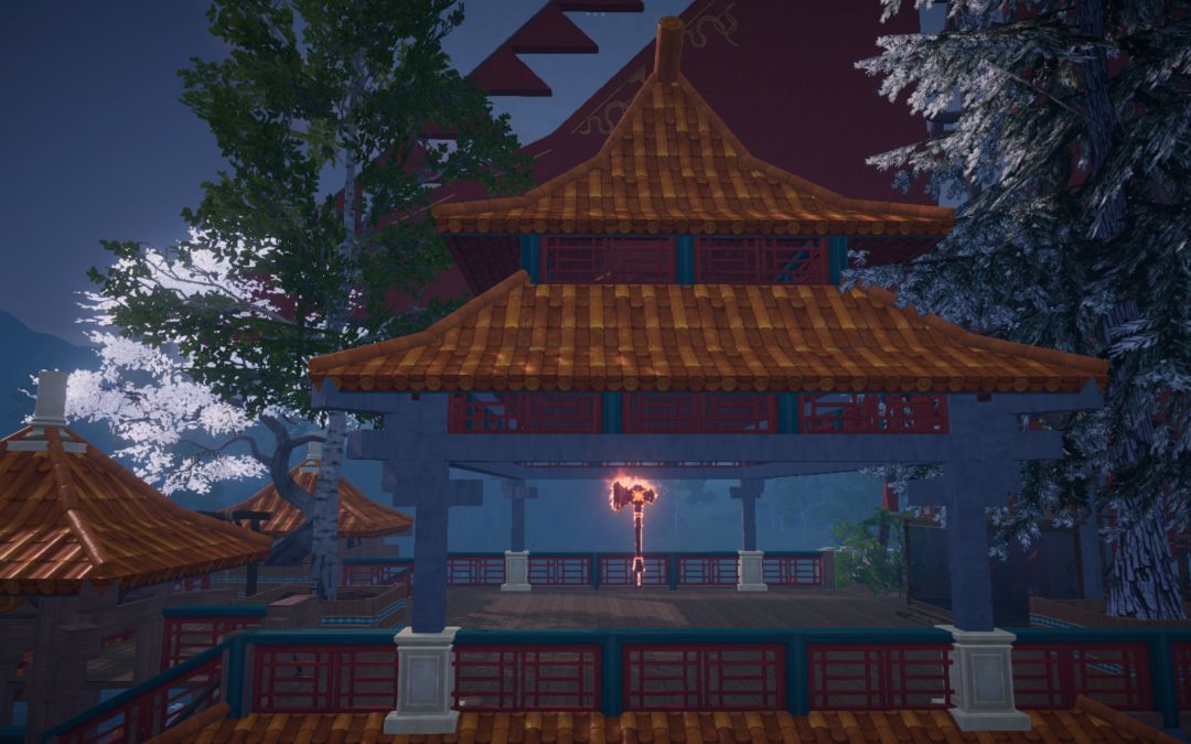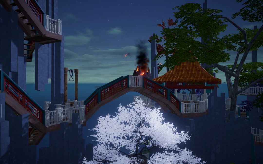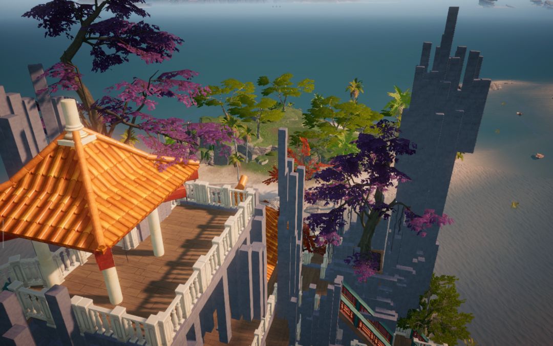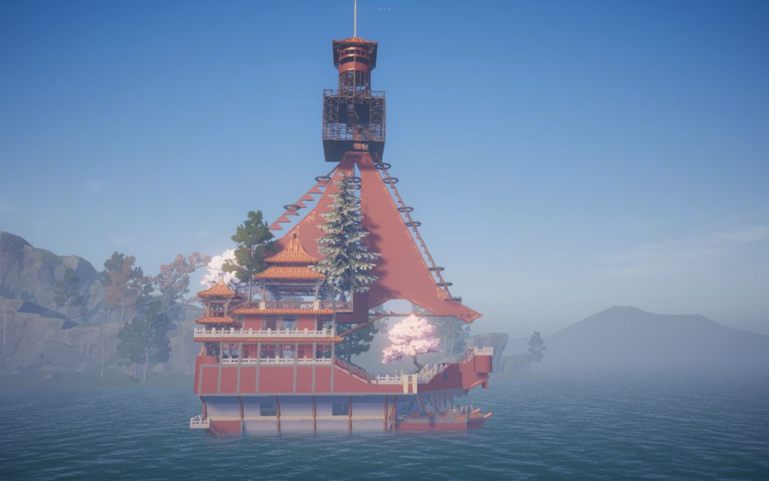 转向海面,朱红古船载着重檐亭台破浪而来,船头的兽首与桅杆的花树,藏着东方浪漫的极致写意。黄昏时飞檐镀上暖光,雨夜中闪电劈开迷雾,星空下望远镜遥向月轮——每一处转角,都是匠心雕琢的秘境,每一帧光影,都是属于这个世界的、永不落幕的东方幻想。