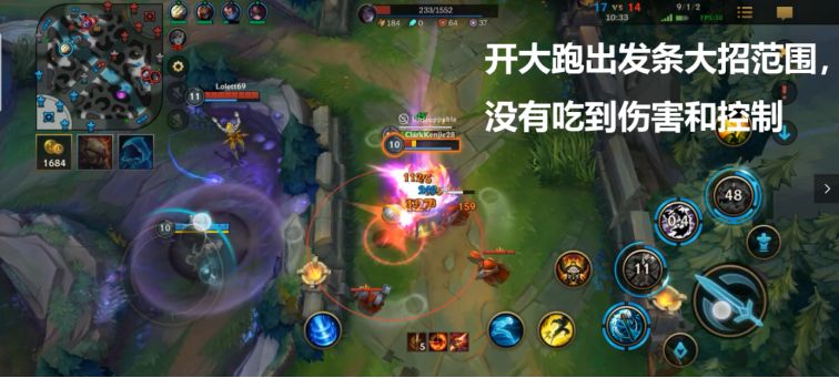 前来支援的发条隔墙丢球,奥拉夫看穿她即将开大的意图,提前开出大招,借着大招提供的高额移速直接跑出发条的大招范围,既没有吃到伤害也没有吃到控制,并且在发条大招结束的瞬间击杀卡莎。