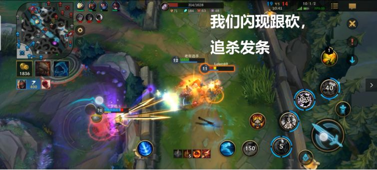 击杀卡莎之后,奥拉夫凭着大招快速跑过墙接近发条,与此同时墙另一边的阿卡丽偷袭发条将之打到半血,发条无奈只能开出金身硬拖,并在金身结束后屏障闪现双交过墙妄图逃生。