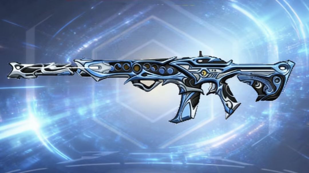 枪身的设计特别精致,镂空的孔洞、流线型的造型,还有细节处的花纹,每一处都很用心,整体风格又酷又飒,蓝银配色看着特别清爽高级,不管是在仓库里展示,还是在实战里拿在手里,都特别吸睛。