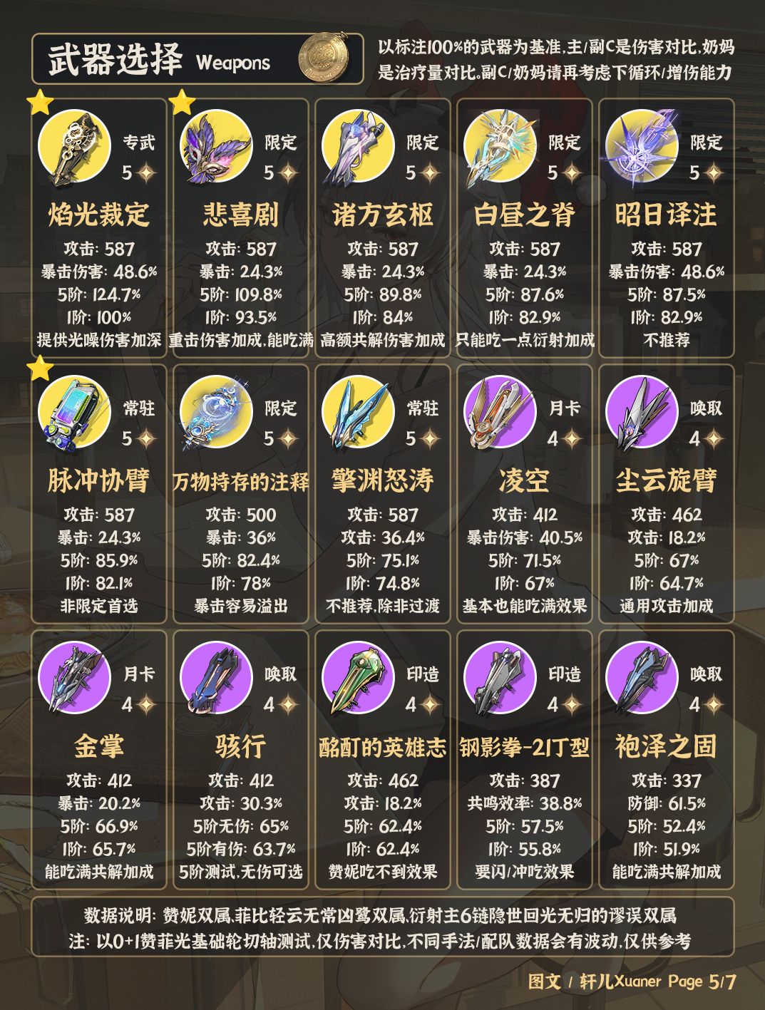 ④ 赞妮武器首选专武焰光裁定。除专武外,许多武器加成赞妮都可以吃到,洛可可专武可以完美适配赞妮,伤害与专武差距不算太大。不抽限定武器的话优先使用新常驻脉冲胁臂。四星武器优先月卡武器和尘云旋臂。