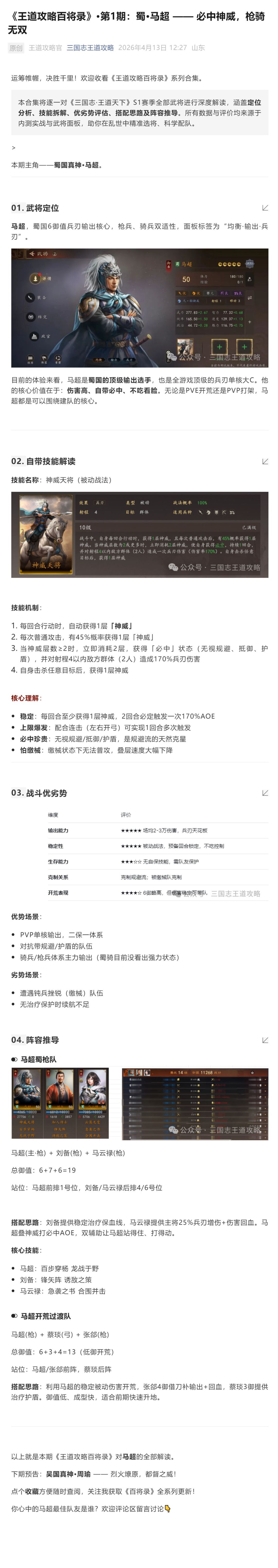 《王道攻略百将录》·第1期:蜀·马超 —— 必中神威,枪骑无双