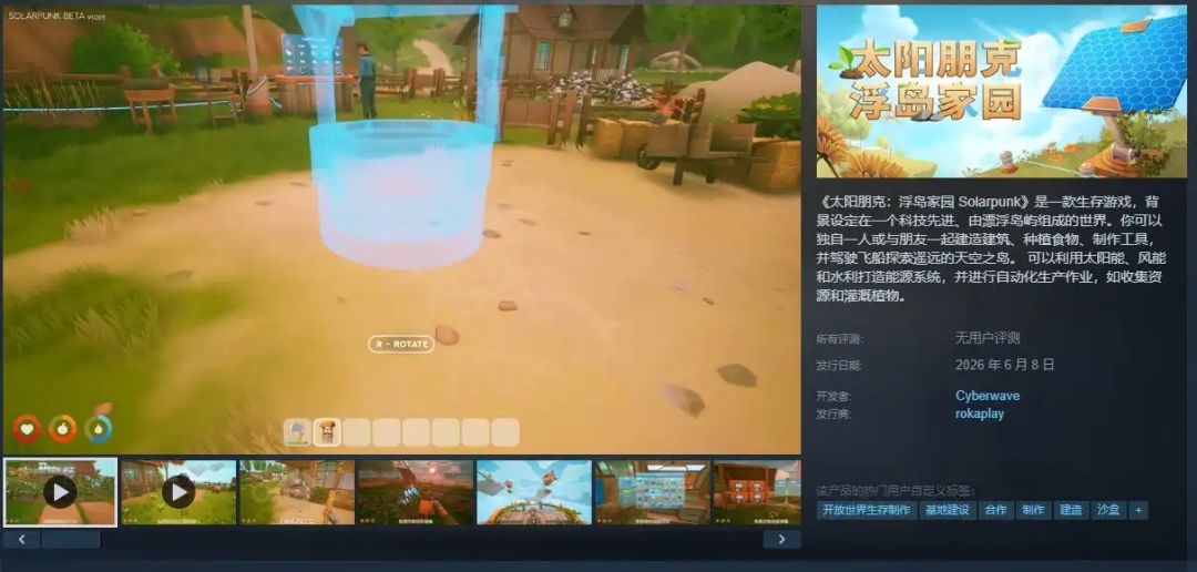 无论你是追求极致自动化的建造大师,还是只想在闲暇时光与好友一起云端种田的休闲玩家,这个6月,这片恬静的浮岛世界都将为你敞开大门。感兴趣的玩家可立即前往Steam搜索《太阳朋克:浮岛家园》加入愿望单,第一时间获取发售通知。