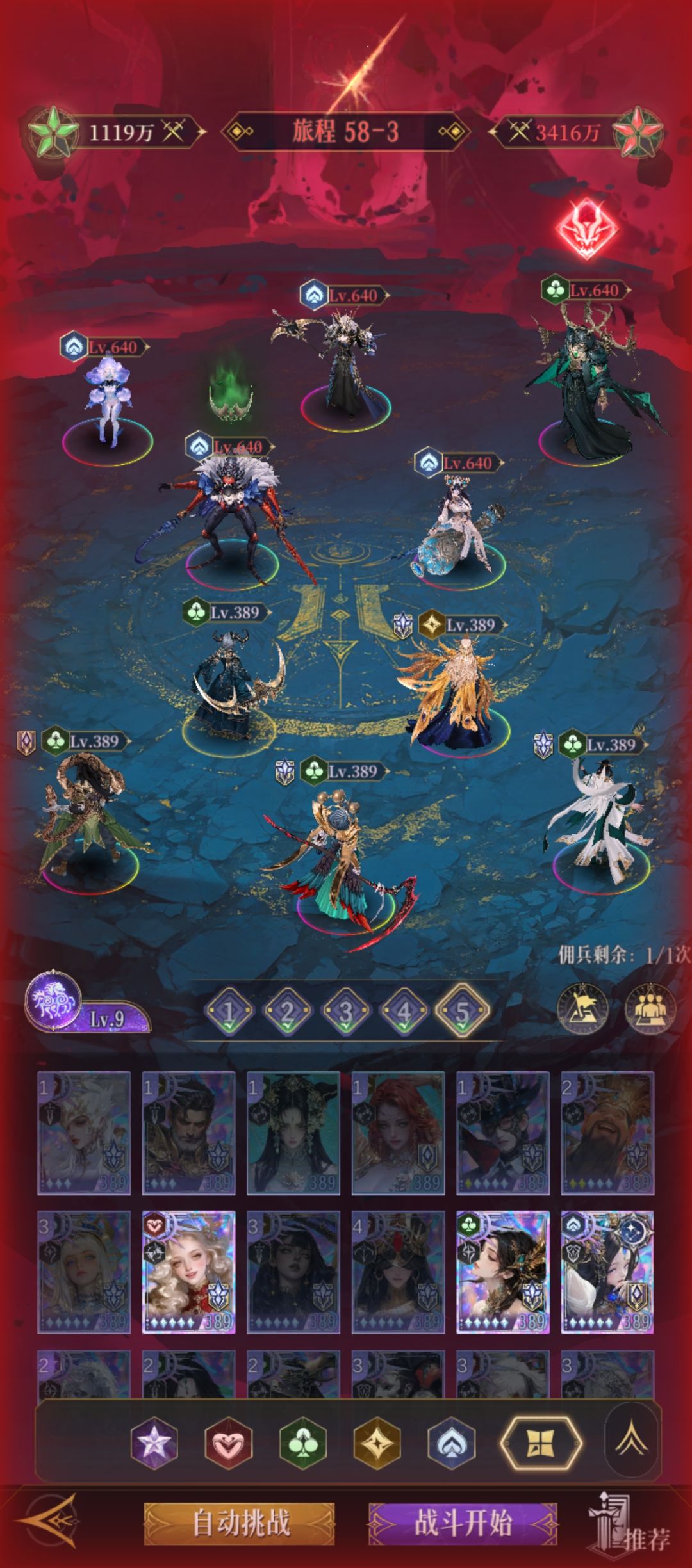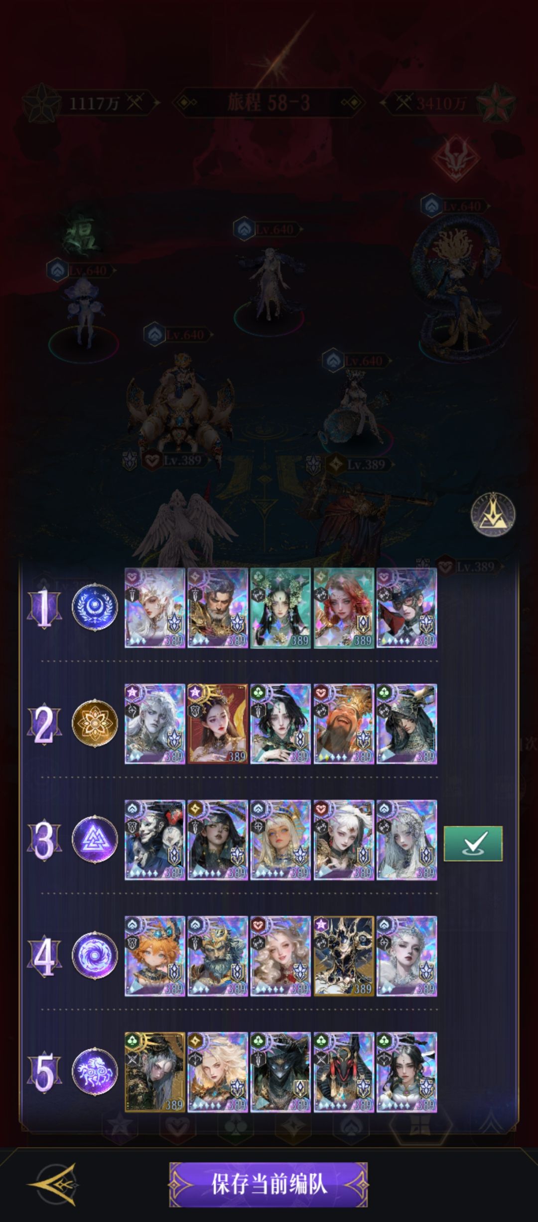 这个就是我过57-45的阵容,由于没有截图只能过了在截图,五个队伍的上阵顺序就是这样的
