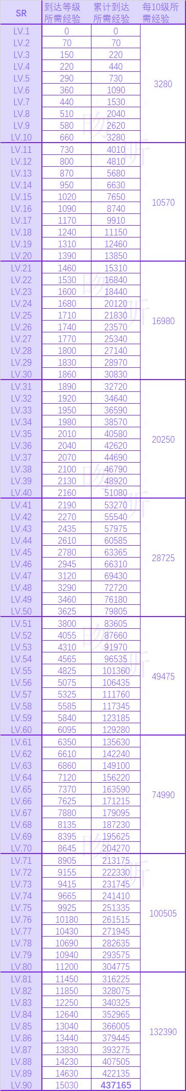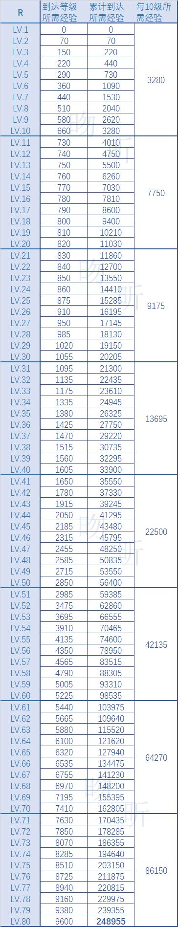 后面几级升级经验巨大,大家可以根据经验表合理安排自己的经验材料