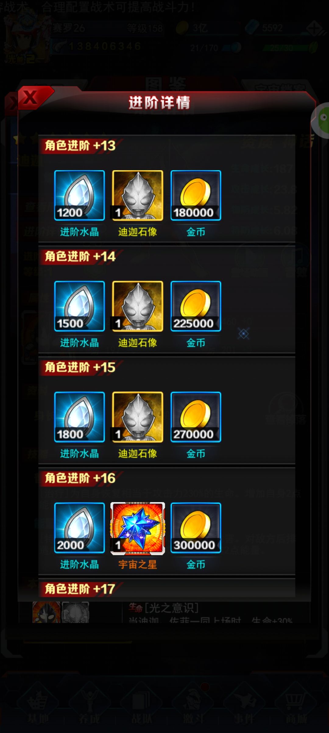 迪迦三种形态和进阶所需物资