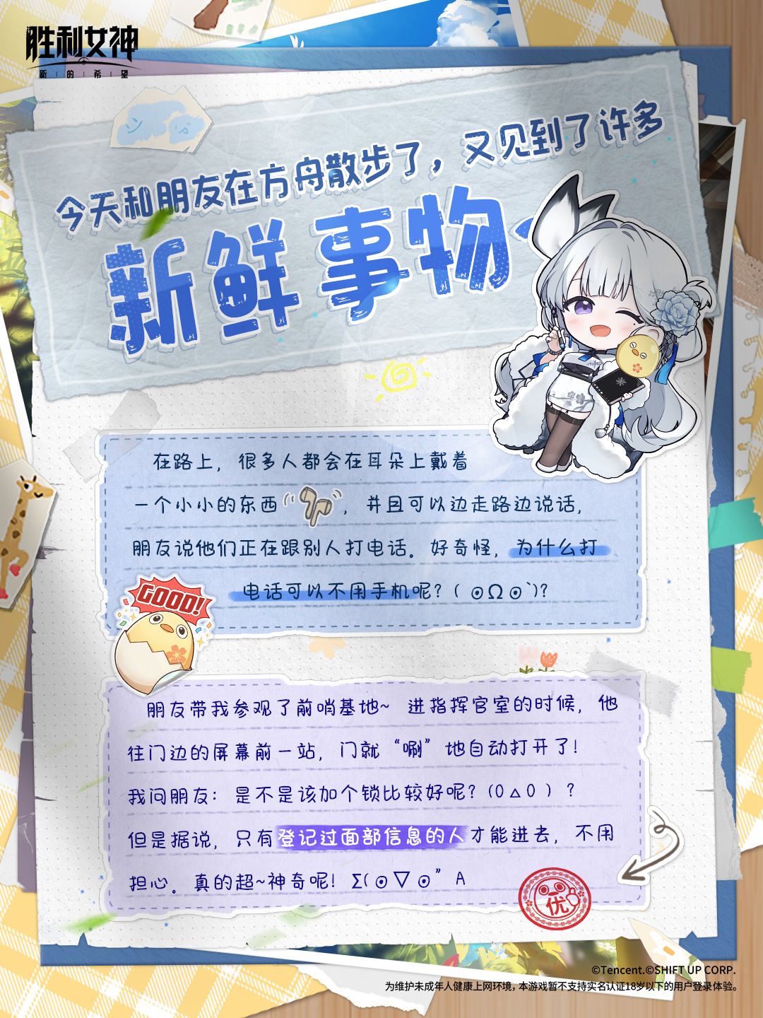 白鹤将疑惑记录在了自己的小册子上,根据小册子里的记载内容,在评论区留言解答她不理解的方舟新科技吧!🎁我们将于4月27日于本条评论区随机抽取5位幸运指挥官,送出【随机妮姬徽章】1份!