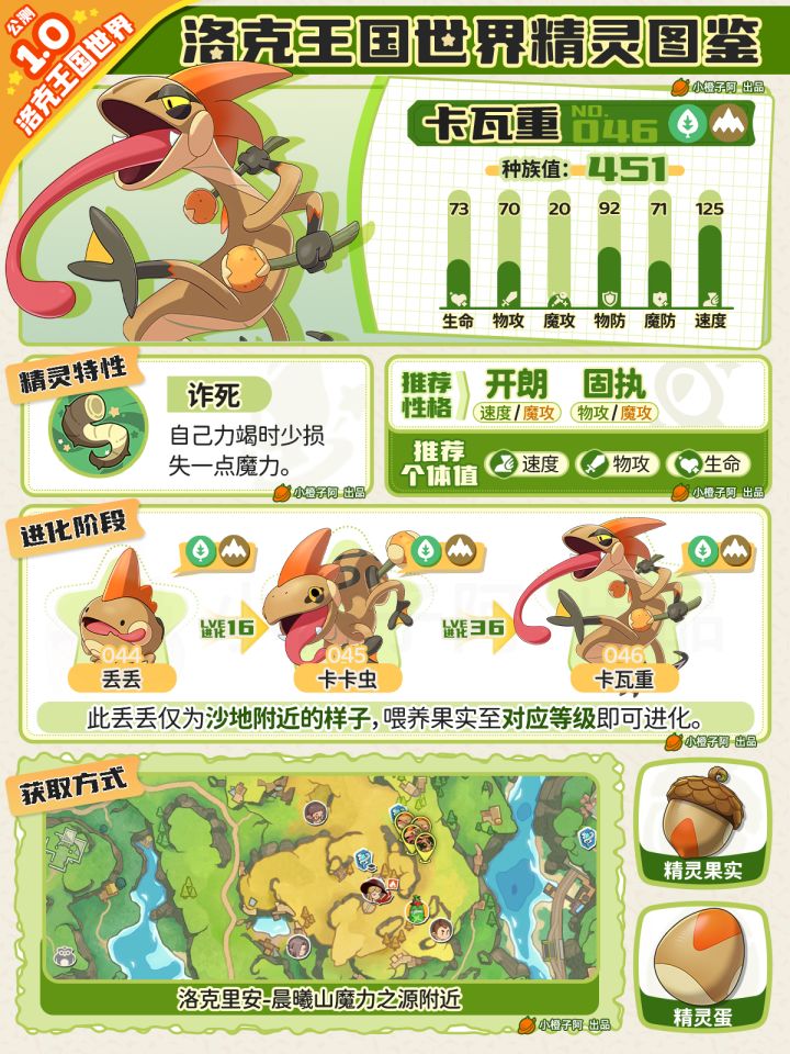 哈喽喽,这里是小橙子环游记~这一期是洛克多种形态精灵图鉴,由于只能放18张图,橙子将会分为4期将所有多种形态更新完。第一篇多种形态图鉴为:晶石蜗(6种形态)、卡瓦重(3种形态)、幽冥眼(2种形态)、蹦蹦花(4种形态)、千棘盔(2种形态)。观前提示:①精灵数量比较庞大,数据可能存在一些问题,小伙伴们可以在评论区提出来,我进行慢慢修正。②图鉴性格、个体值并不是唯一,由于精灵配队多种多样,推荐