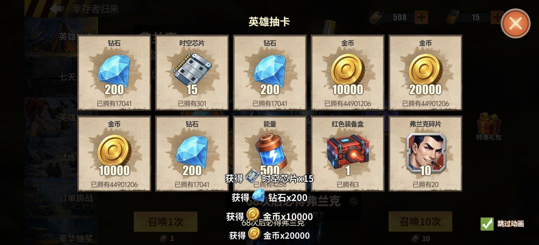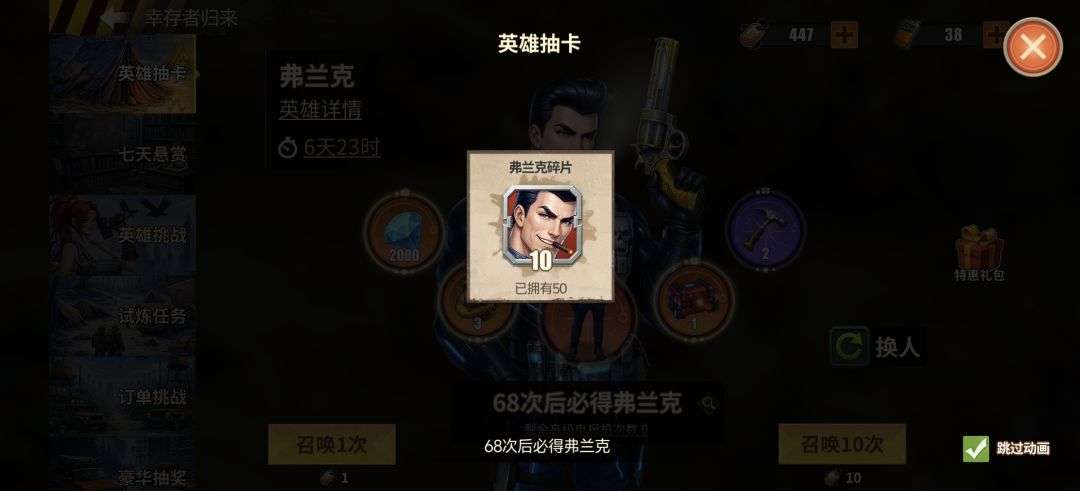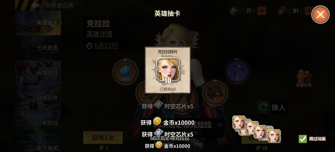 5只弗兰克(0碎片开始,结束50碎片),6只克拉拉,卡池无了