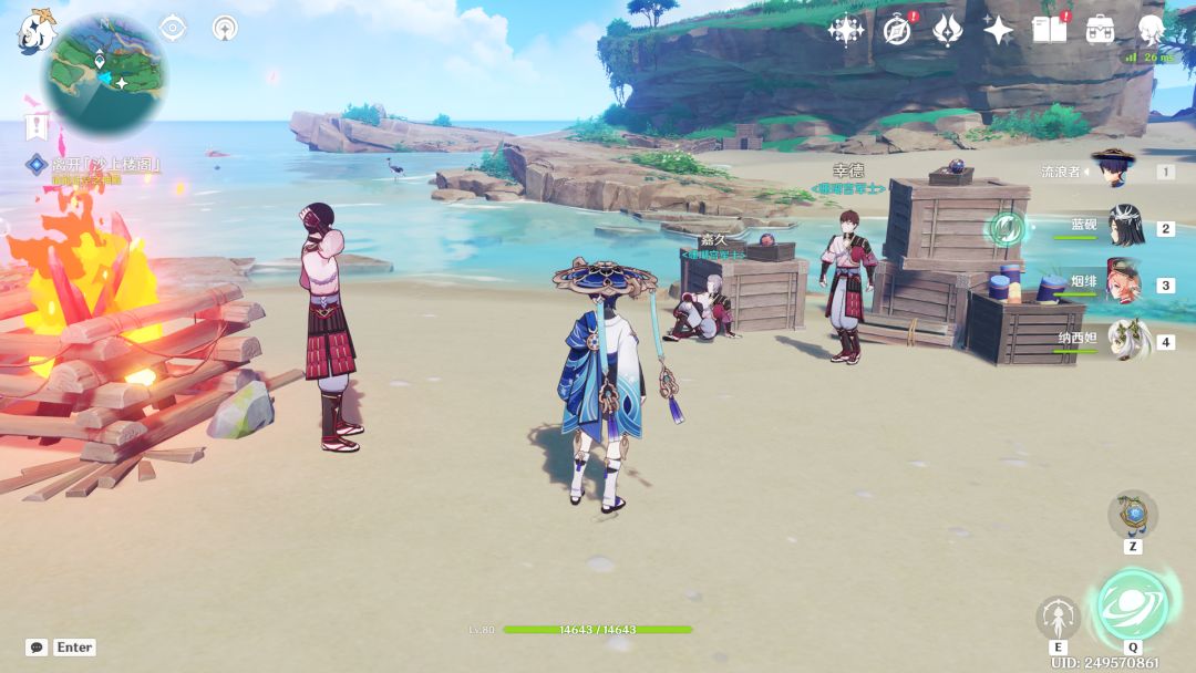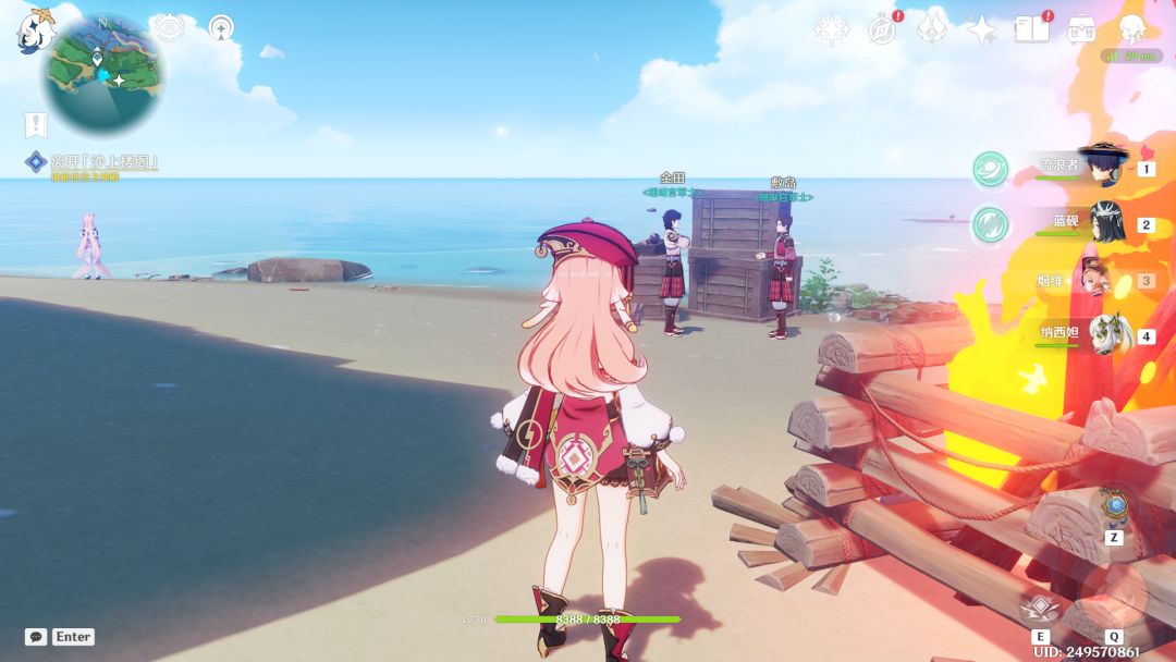 后面碰见剑鱼二番队的朋友,说好久不见得开个聚会,结果过完对话真的给我还有几个剑鱼二番队队员传到了海边开起聚会来了......我以为聚会什么的会放到心海下一个逸闻的来着_雾(p3:这里的火不烫脚,不知道的少玩5块钱了_笑)