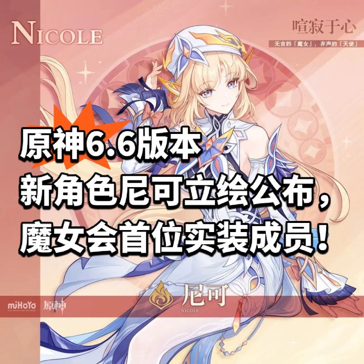 尼可作为6.6版本上半卡池新五星登场,同期杜林复刻概率较高。后续两天预计还将公布洛恩(五星)和布伦妮(四星)等新角色,目前猜测是火神玛薇卡或在下半复刻。对于已抽取杜林和法尔伽的玩家,尼可是体系补强的重要角色。不过具体强度如何,还需要等官方公布才知道了。旅行者们会抽取这位新角色吗??![[表情_猫咪举手]](https://img-tc.tapimg.com/market/images/a3c0b426c5410082eae426404982cc0e.png)