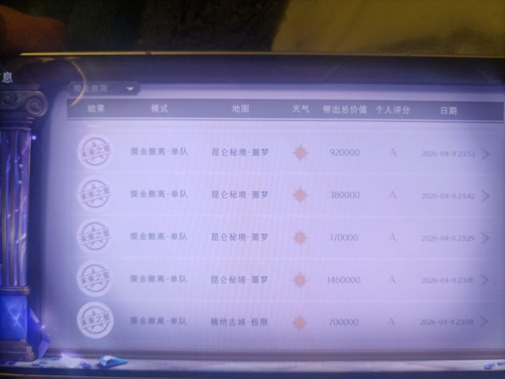 没招,我作为一个4队的狂热粉圣杯大剑基本都在4队出的,没想到这两天心血来潮去刷一下昆仑那些。出了5把大剑,一个圣杯,还不错,然后其中一把大剑还是出轩辕了(这么说来,我圣杯一共出了11个吧其他的都卖了,现在就剩5个本来是6个的,卖了一个去把梦居升到11级了梦居里卖了一半东西吧龙马精神我本来有一柜子的,现在就剩俩有点儿不高兴(ー_ー)!!)建议官方再爆率调高点吧。阿念魔盒入坑的我到现在也就才出了11个圣杯,40多把剑。当我把梦局抽完之后,拢共也就剩个30多万。对我们这些不经常摸金的人好点儿吧,今天晚上的爆率太低了,三四把没撤出来,都是因为没钱。或者跑昆仑去一大堆怪。开个水下关,刚探出个头,3.4个兵俑就那么架着你的头。哎呀,还有那个小熊猫。我死了之后,我用我双开的号去救大号救途中耽搁了好久,小熊猫都没回来,还在那边站着。结果刚把大号救过来,刚附身摸金符还没捡起来呢,就被拍死了。这你扯不?那把还摸出来一个大剑呢。哦,对,隔壁还有个么宝藏房,给我气死了吧。总结来说,这两天的超自然就是属于要么怪多的要死,要么少得要死,要么爆率高的要死,要么穷的要死。反正基本都是极端吧