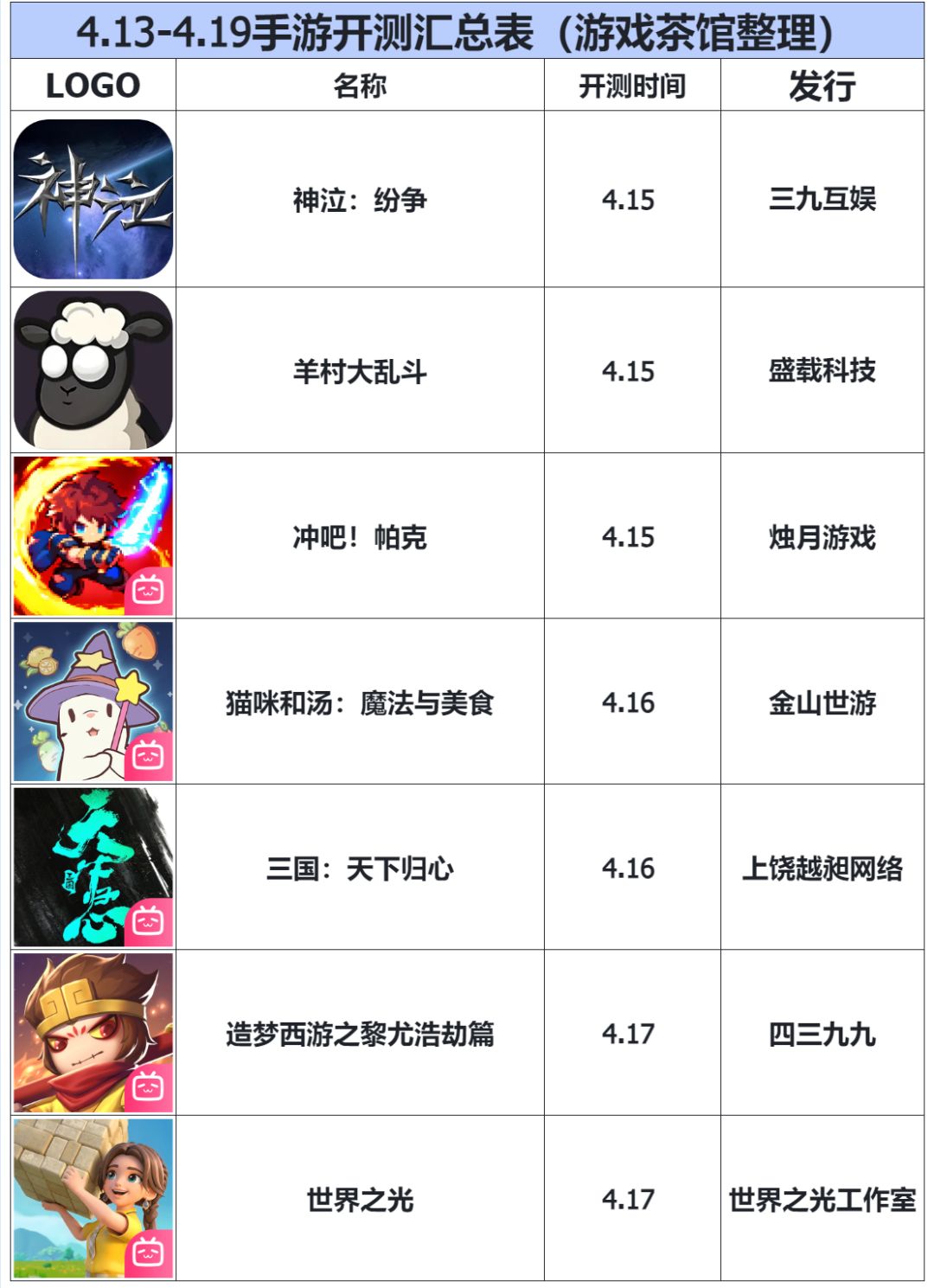 游戏茶馆整理了本周(4.13-4.19)即将上线的新游戏