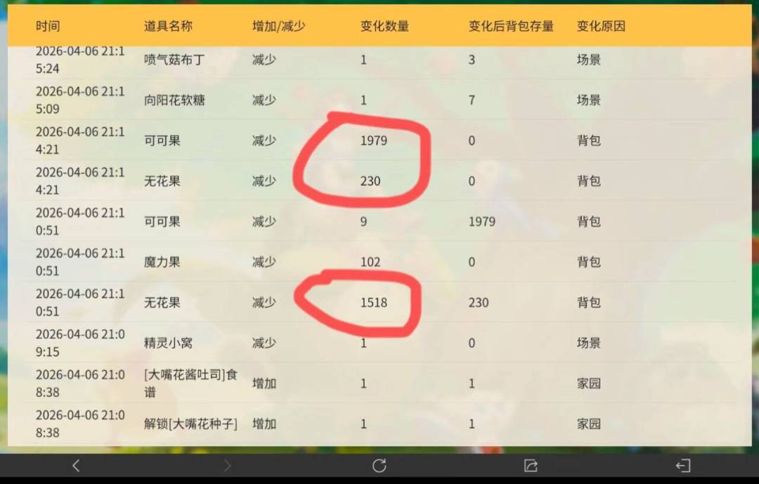 图里就是那个谣言,可以看到,图里数据的变化仅显示了场景在背包,以及减少了果子,并不是说就是精灵偷吃的,还一次性偷吃几千几百的……很多人都看出来了,这明显是那人自己喂的果子,但是还是有很多人信了。