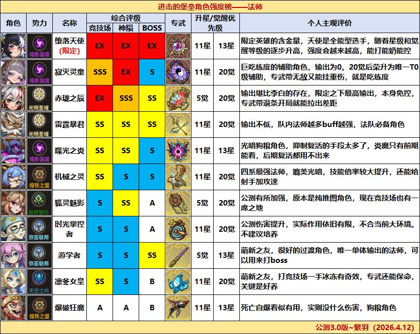 大家好,我是繁羽,本期攻略会同步发布在taptap上面,图片在taptap上查看画质更高。开服九个月了,限定也出完了一轮是时候更新第三版强度榜了,这版去除了推图评级,加入了神陨评级。游戏目前弱pve,游戏首月过后基本不会卡主线,反而神陨的5人队和原竞技场的7人队差异很大,很多英雄在不同人数限制下强度表现完全不同,需要重新评级。