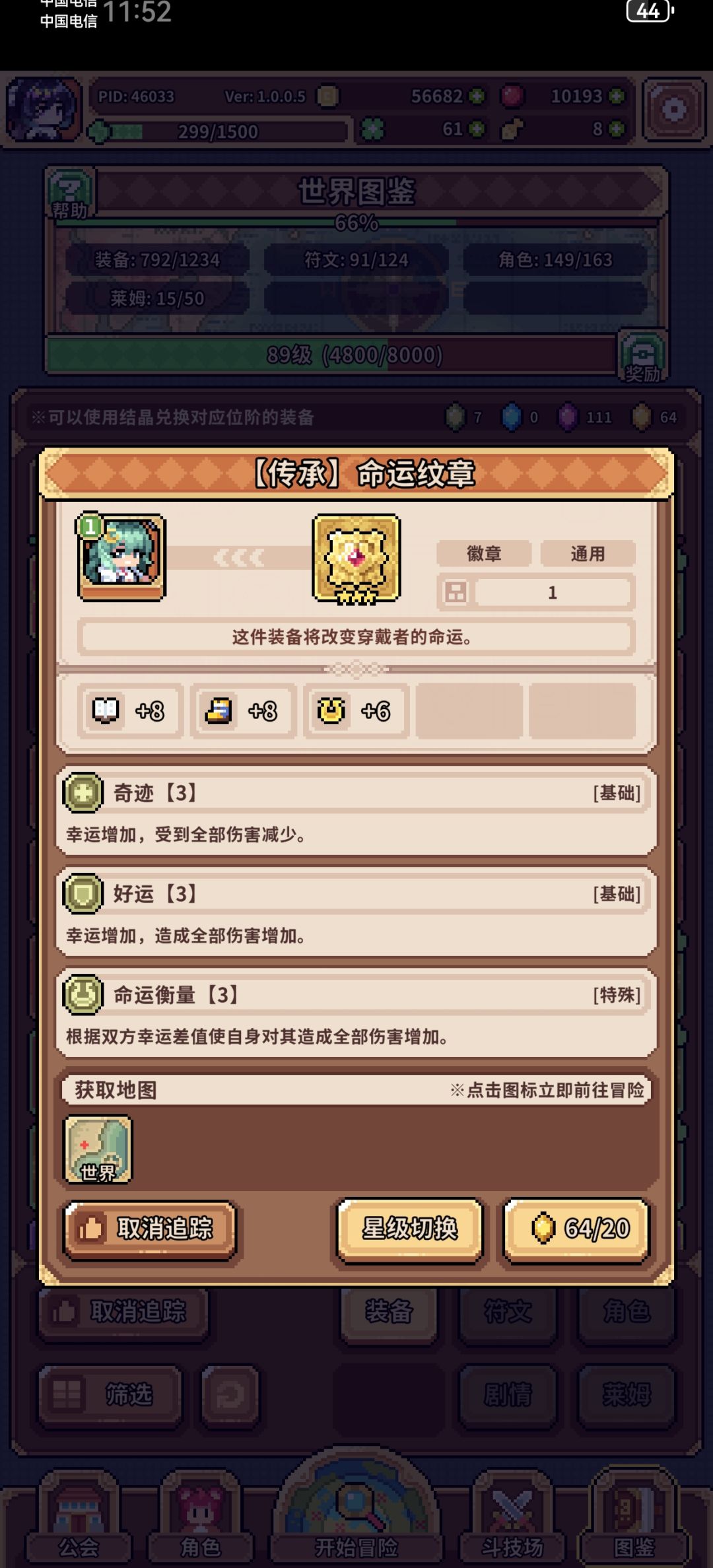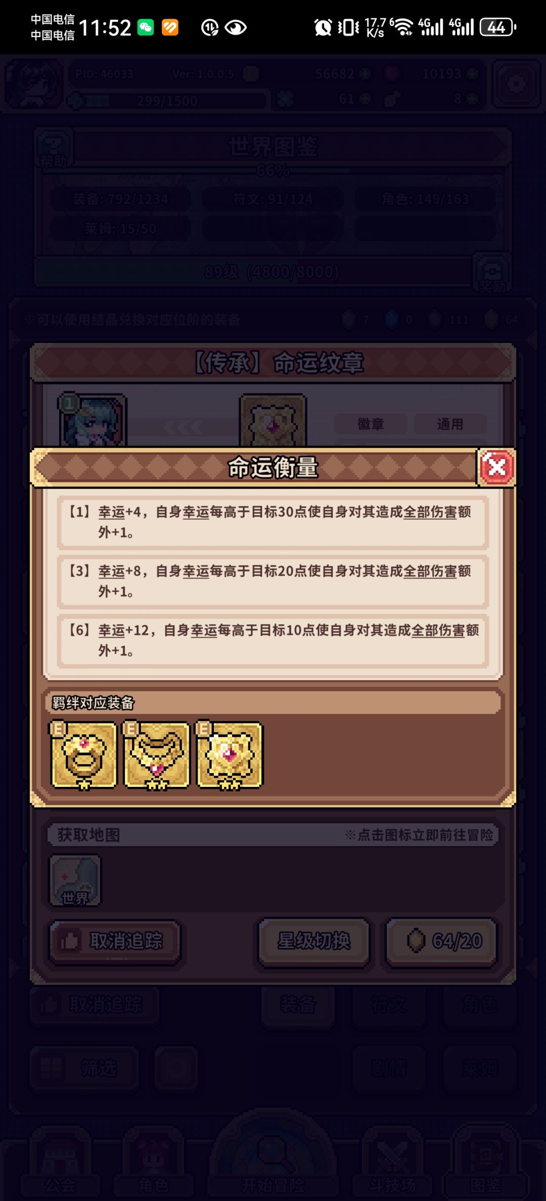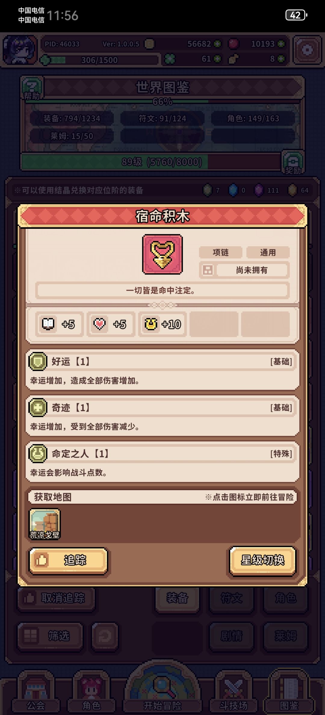 项链徽章戒指一组,荒凉戈壁的红装加另外两个橙装的幸运套最高,一共18(红装基础的幸运)+6×2(幸运套基础的)+12(命运衡量)=42