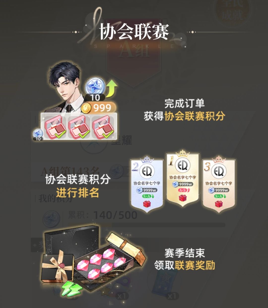 核心规则:完成订单 → 获得协会联赛积分 → 积分决定排名 → 赛季结束领取奖励