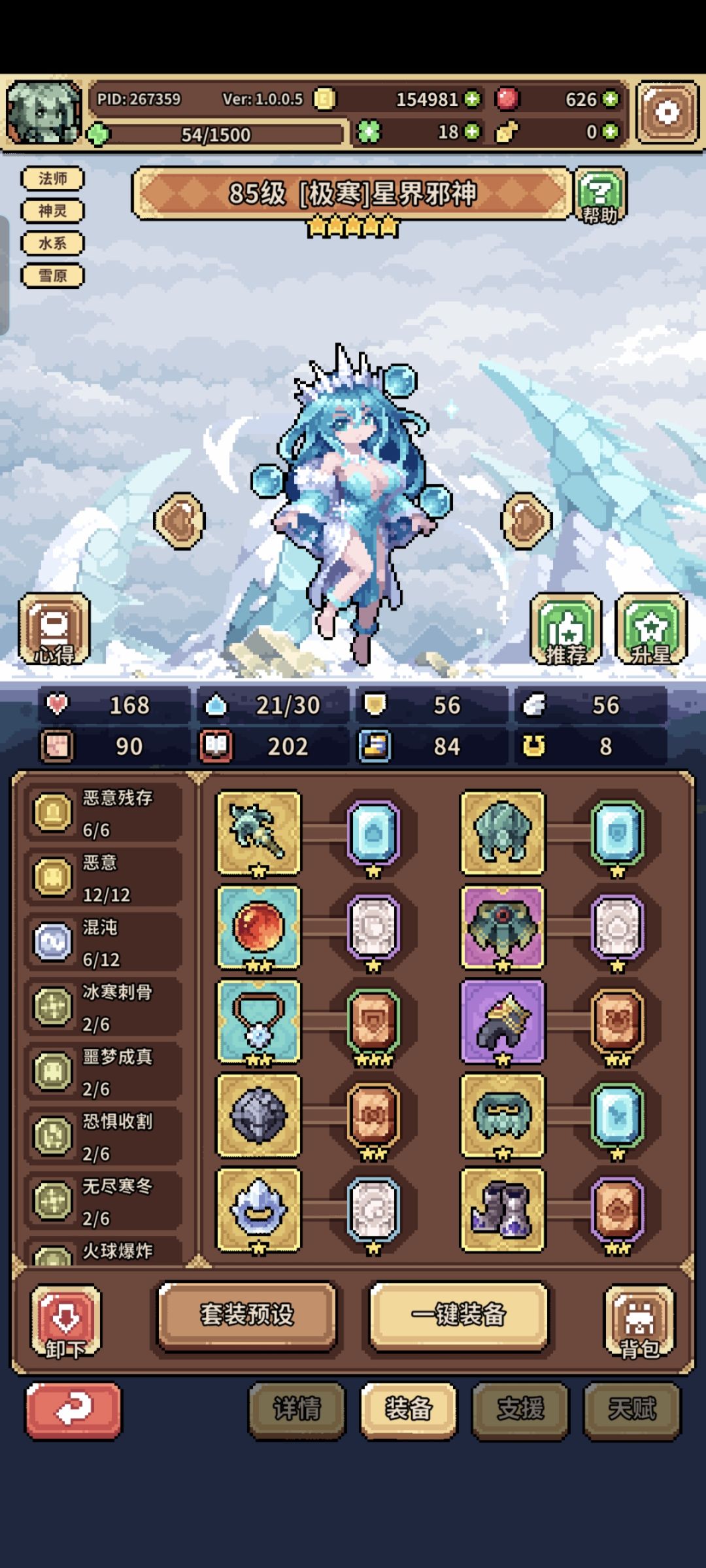 然后,另外的失去生命套装(刺骨,极寒,紫雷……)都可以拆成两份,因为这套中冰蛛五星有失去加成,只要冰冷叠到999,就可以得到大量失去加成!