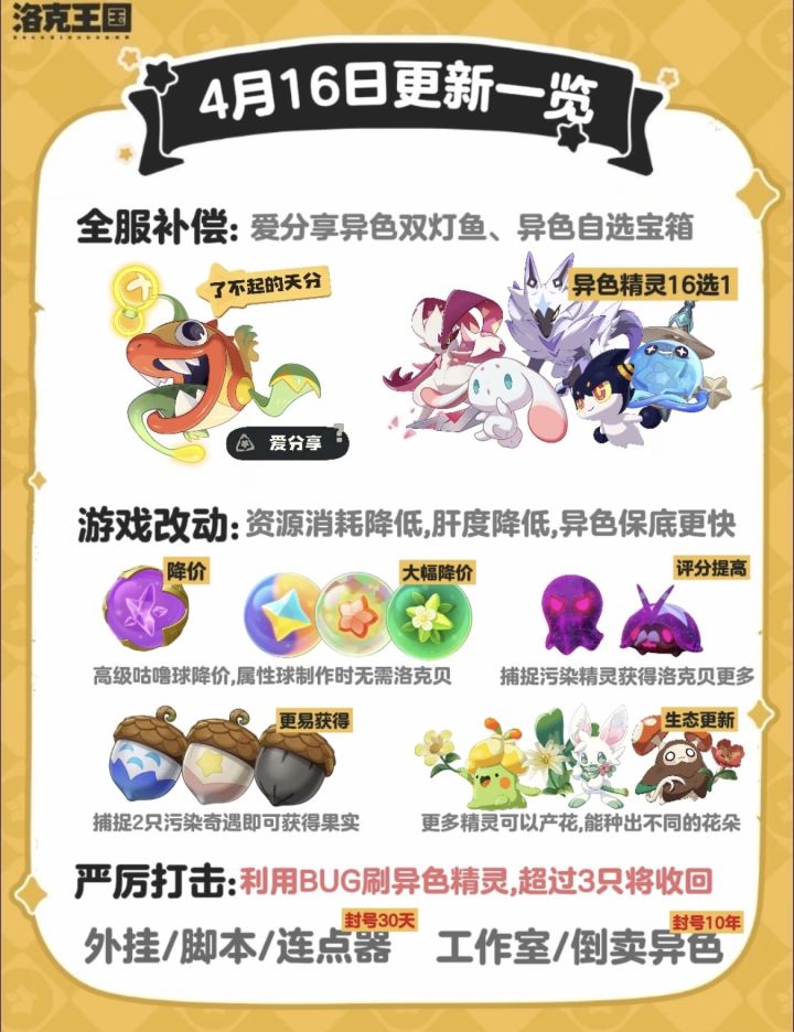 《洛克王国世界》官方最新公告省流版:资源降价、异色保底加速,违规封号严打